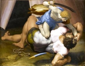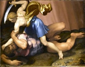 For instance a double sided painting David et Goliath by Daniele da Voterra, where each side of a piece of slate has been covered with different aspects of the scene where David is just about to behead Goliath. There are slight differences in movement on each side and I realise that Walt Disney has been trumped by four hundred years.