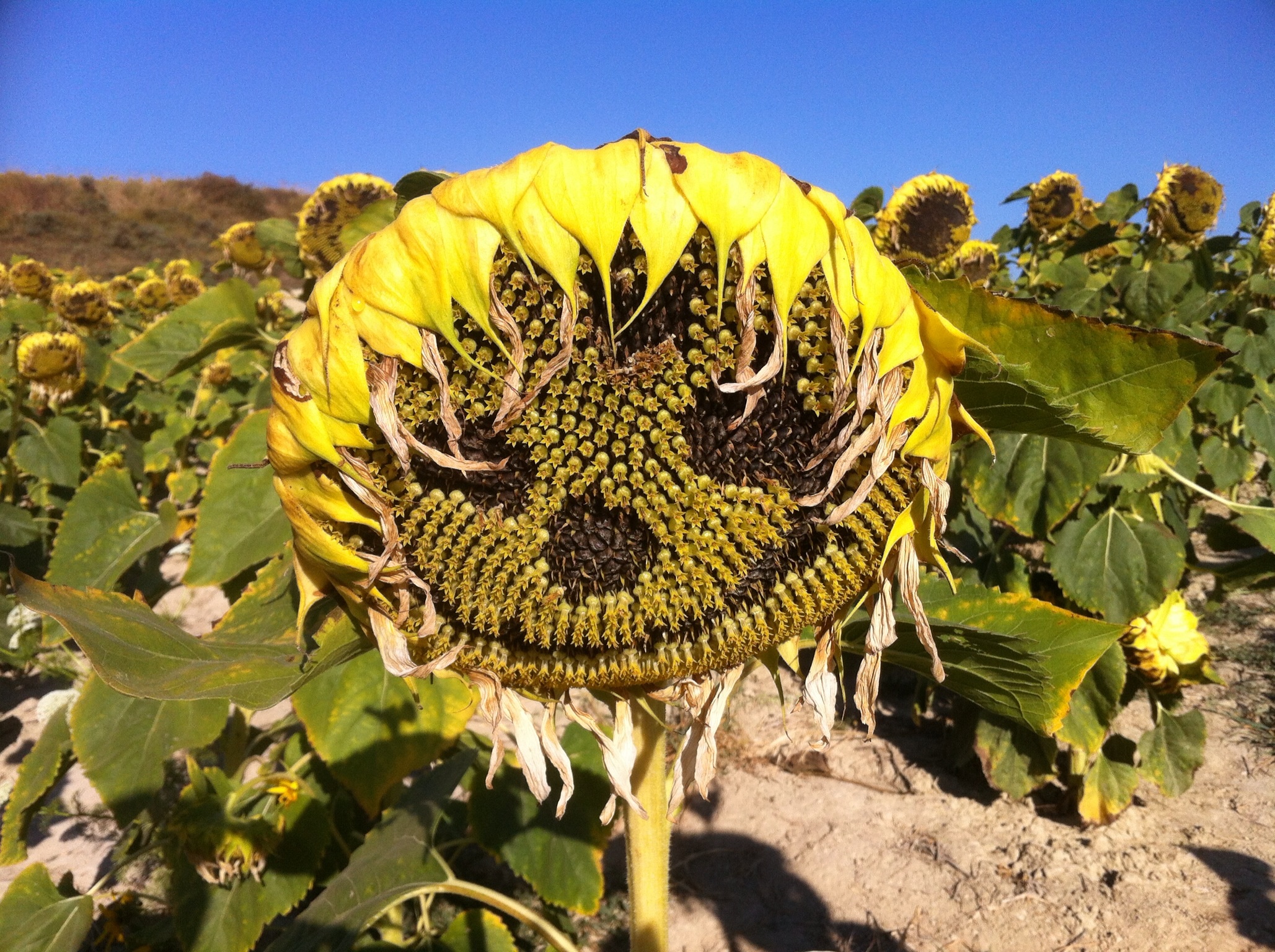 The turn off the Camino taking us to the Cafe was the last paved section for the day and we make our way back before turning onto the rough white gravel track winding its way through fields of stubble and sunflowers.