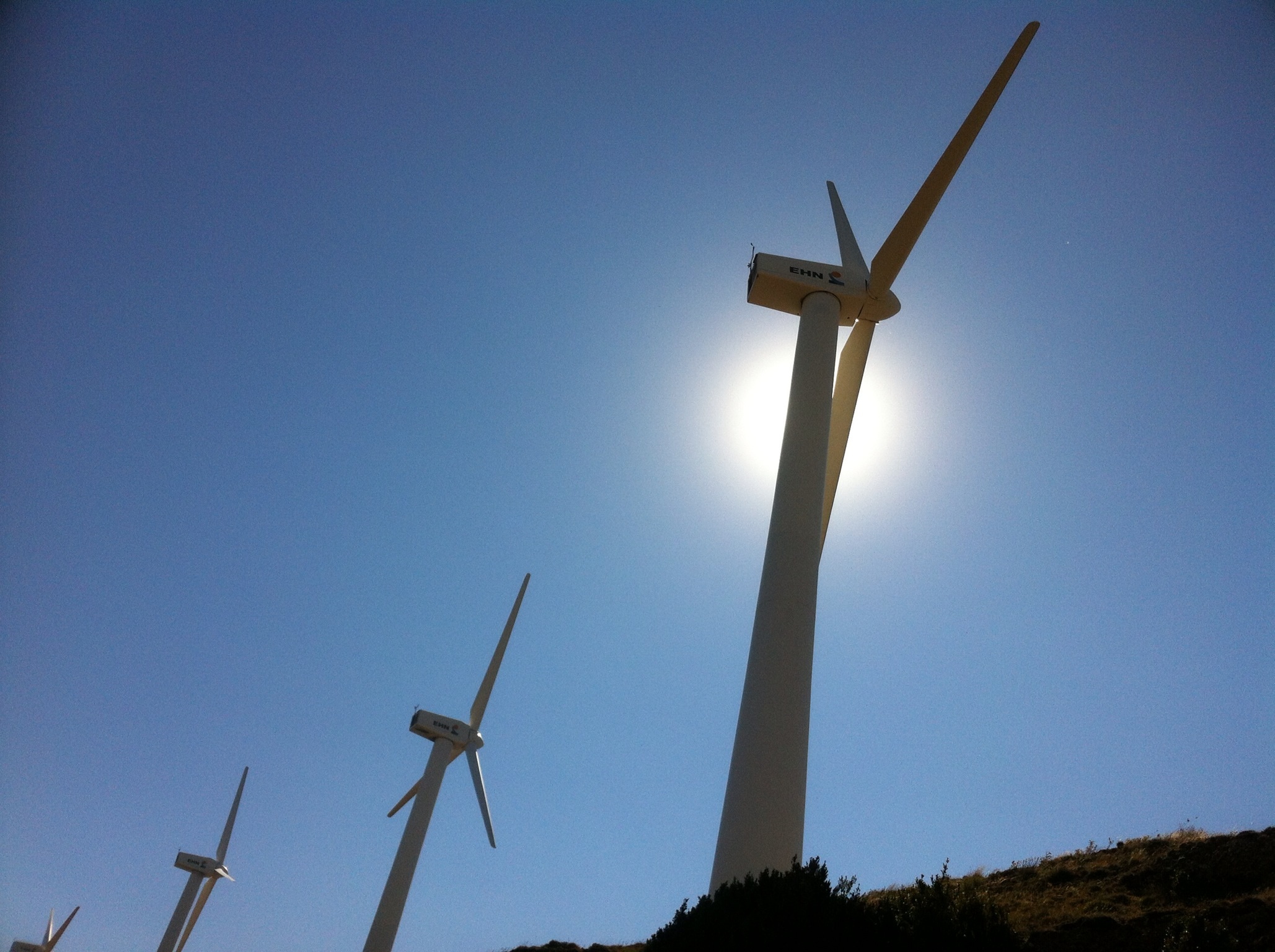 From where we are the turbines look small however the scale compared to the mountain and its vegetation makes me realise they are huge.