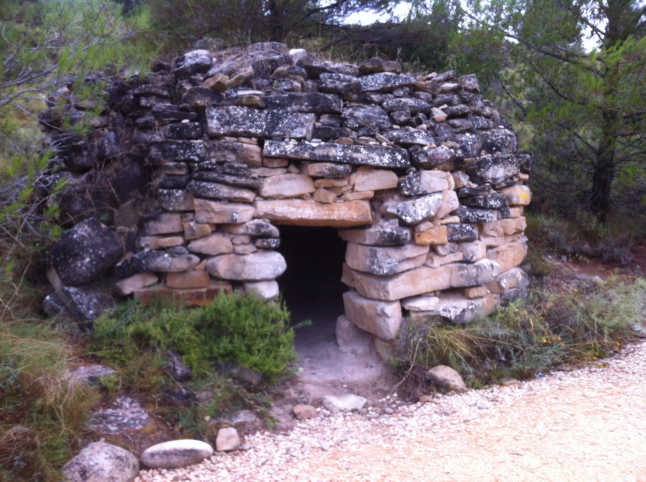 Near the bottom of the descent we pass a small hut made of stones balanced one atop each other.