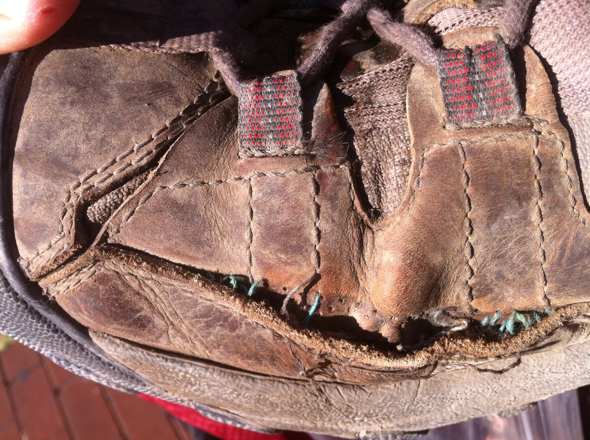My right boot has split open down the inside on the Camino and each day is opening a little wider. By the time we make Logrono there is only approximately one centimeter of stitching holding the front end of the boot together and we are forced to stop and either have it repaired or buy new boots.