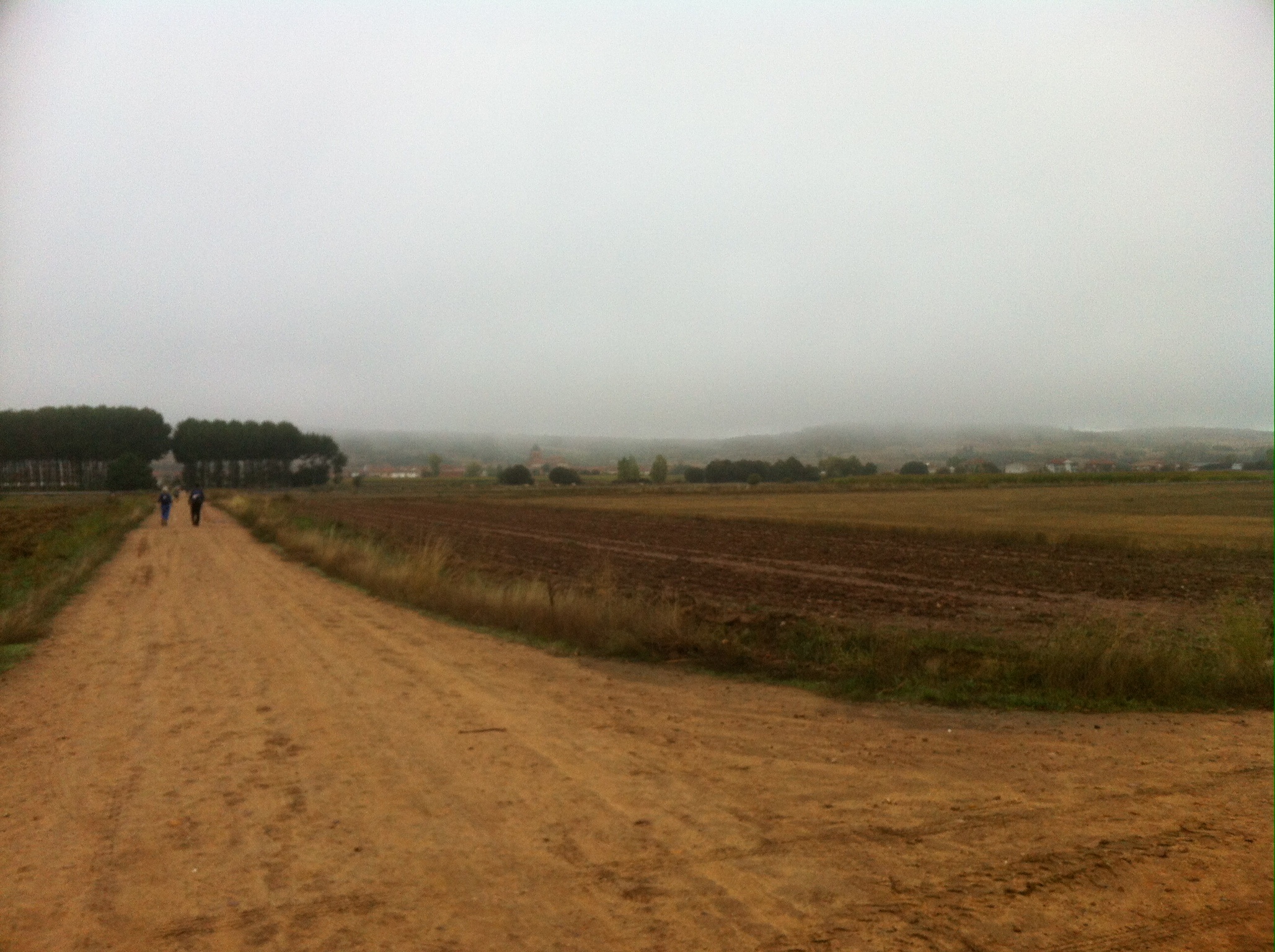 The Way veers to the right and becomes rough gravel farm roads winding through fields of grape vines. We walk on as the mist swirls in our wake.