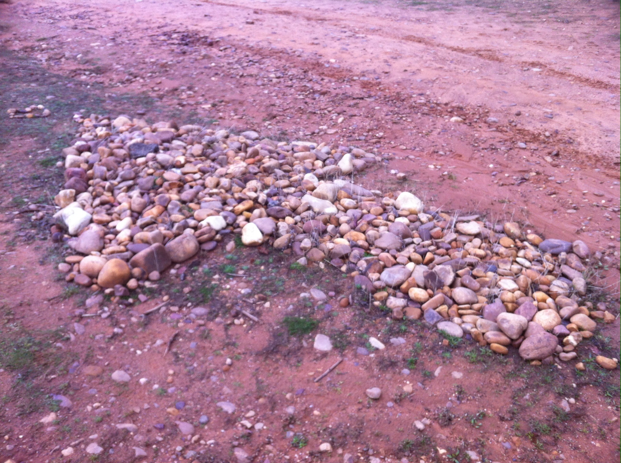 Many farm roads veer off from our path and the Way is only occasionally indicated by the odd stone painted yellow here, or stone arrows gathered and built by pilgrims. None the less we could follow the Way by the imprints of boots and bike wheels in the mud on puddle edges.