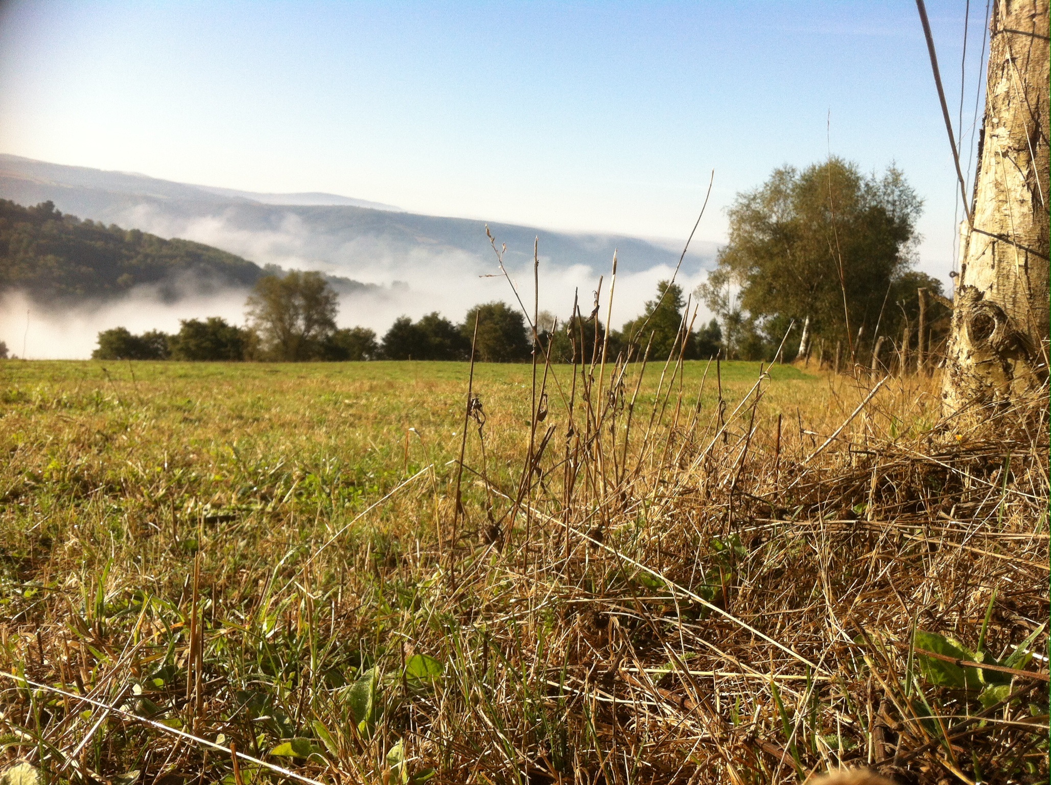 We pass through the first real village for the day as the mist thickens around us shrouding the sun.