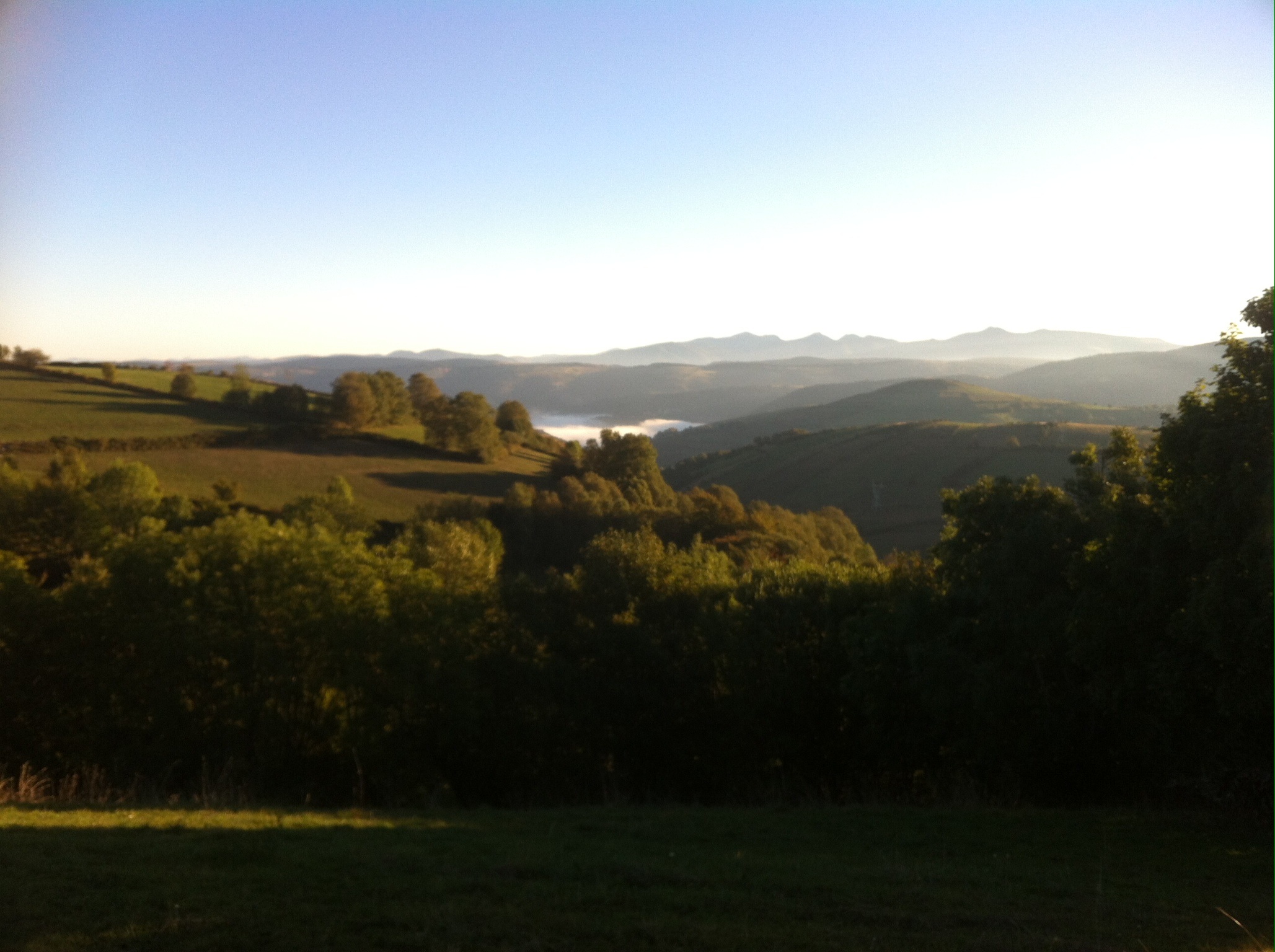 The path widens and the trees are now sentinels beside us, we crest the hill and breaks in the trees ahead let us see the valley below to the south in the morning light.