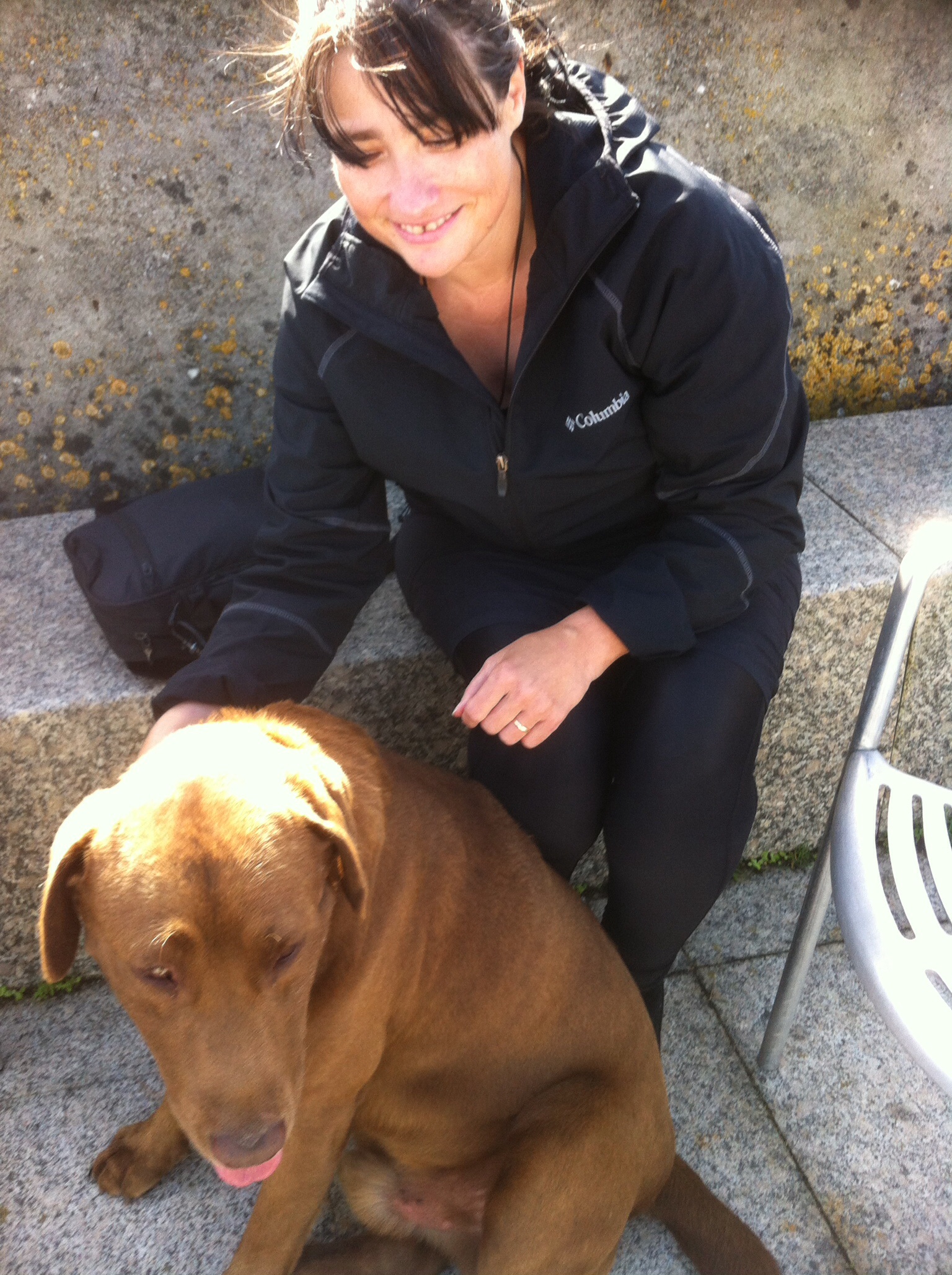 While we are talking a large brown dog makes its way between the furniture. To Pam’s delight the dog responds to her calls and he sits with us for a while.