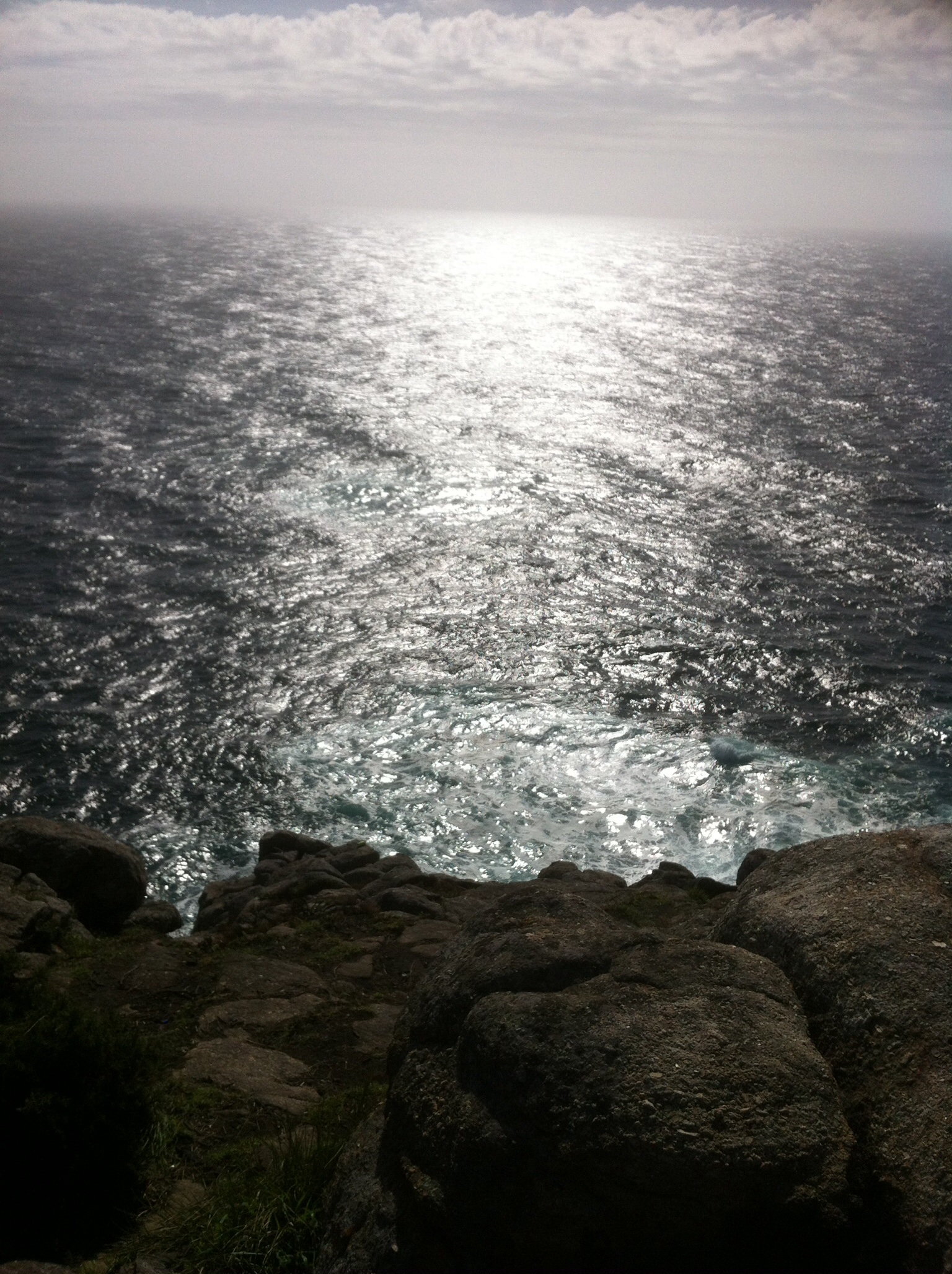 Once I get over my indignation the view is magnificent. The sun hides behind clouds to the West, still the light reflecting off the ocean is blinding.