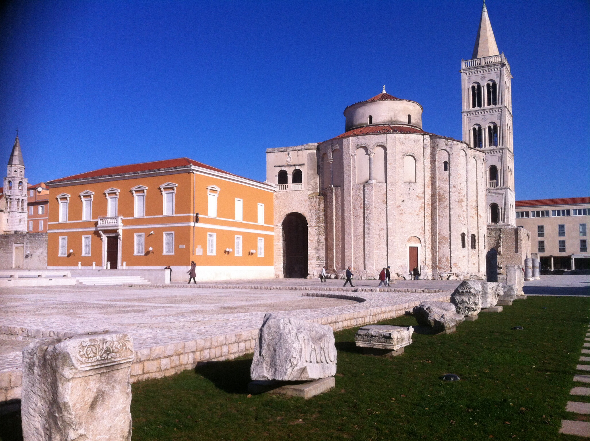 My relief as the turbo-prop plane touches down in the dark morning is palpable. The flight has been loud and bumpy. Pam’s right hand still bears the crush marks. There are four passengers alighting at Zadar, we scamper across the chilly tarmac and enter the terminal.