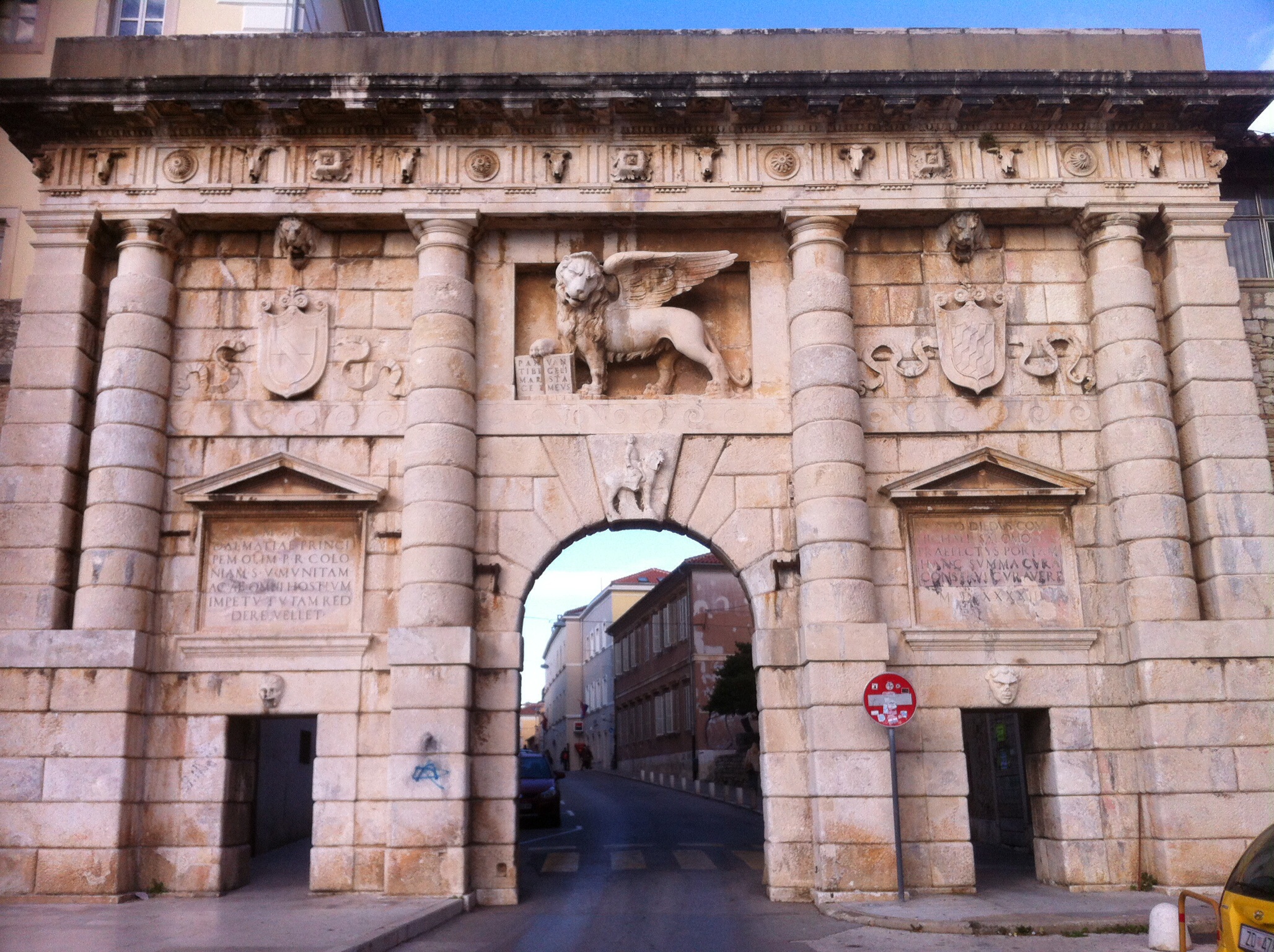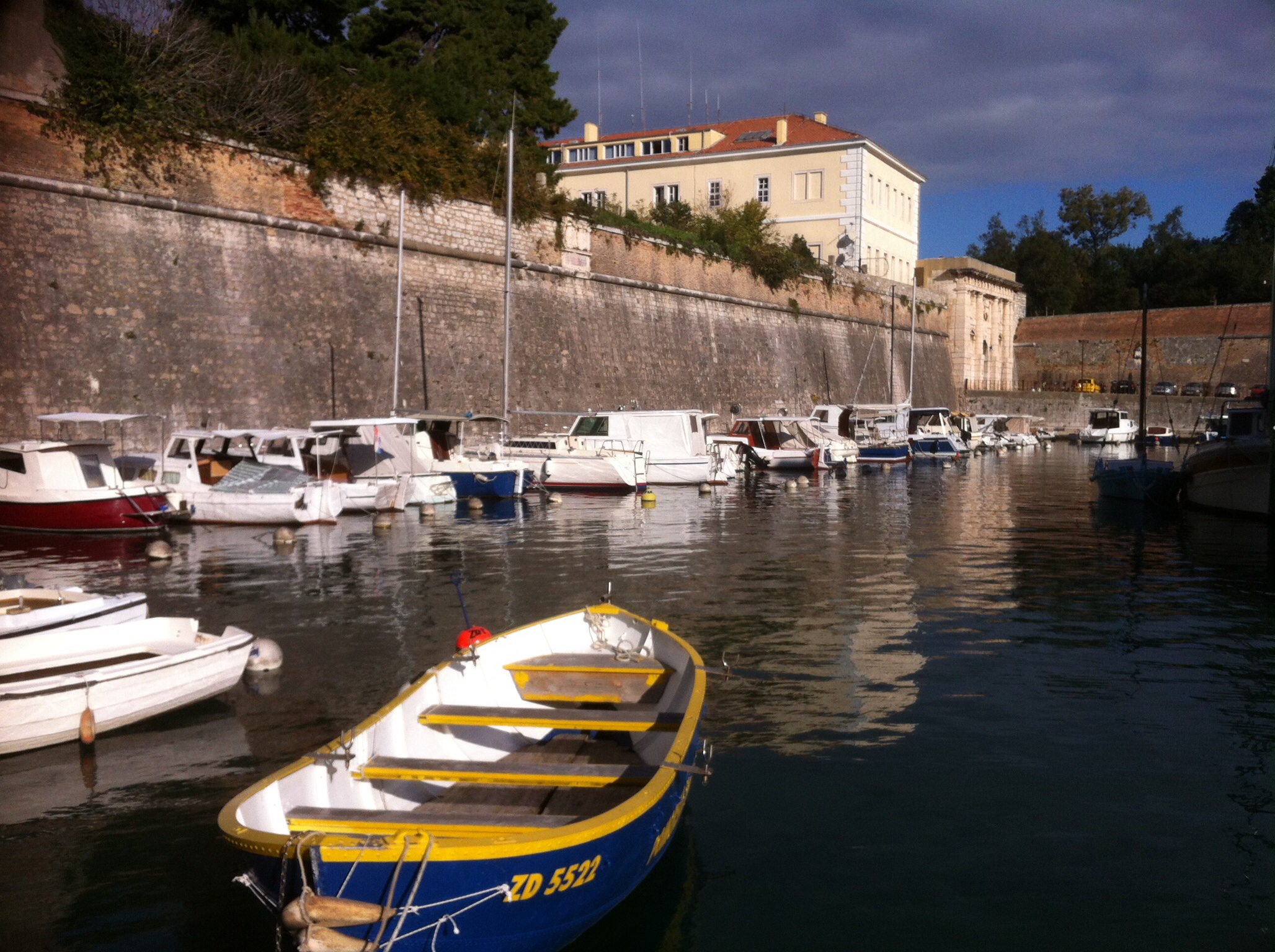 The Riva continues around past the University, beyond a little boat filled cove and ends at the Zadar Land Gate.