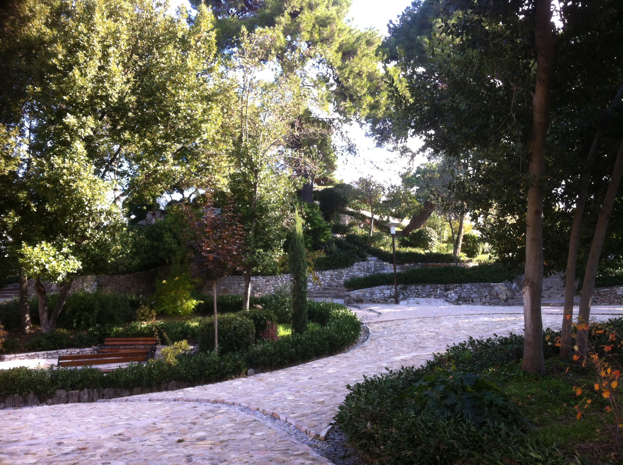This park overlooks the old town and we climb the paths that wind around the hill of the park. Buried under this hill a subterranean nightclub offers caveman frivolity and temptation we are glad to avoid.