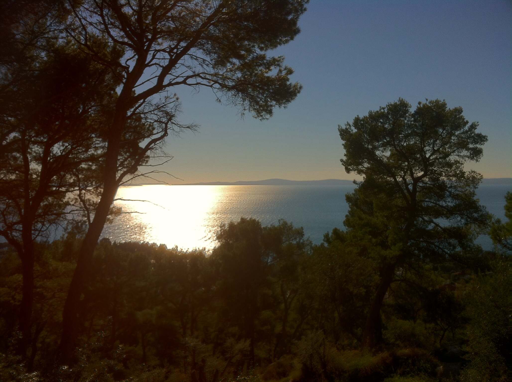 No clouds are visible in any direction, the air is crisp and clear, just like the water of the blue Adriatic that stretches out to the horizon before us.