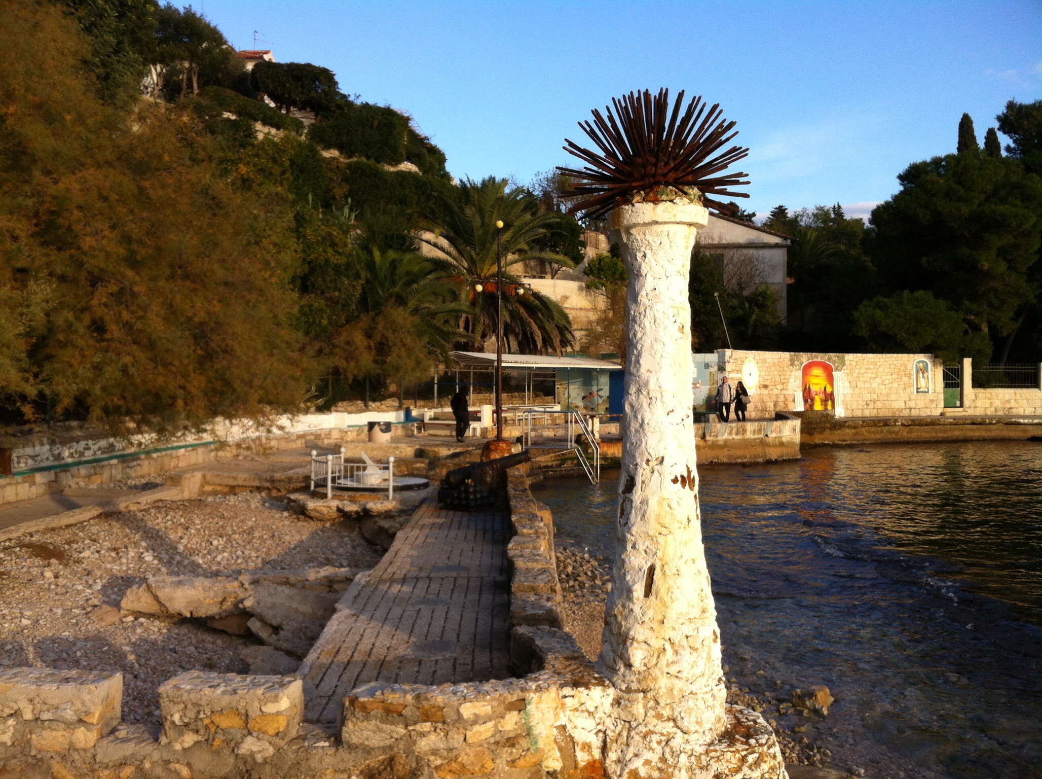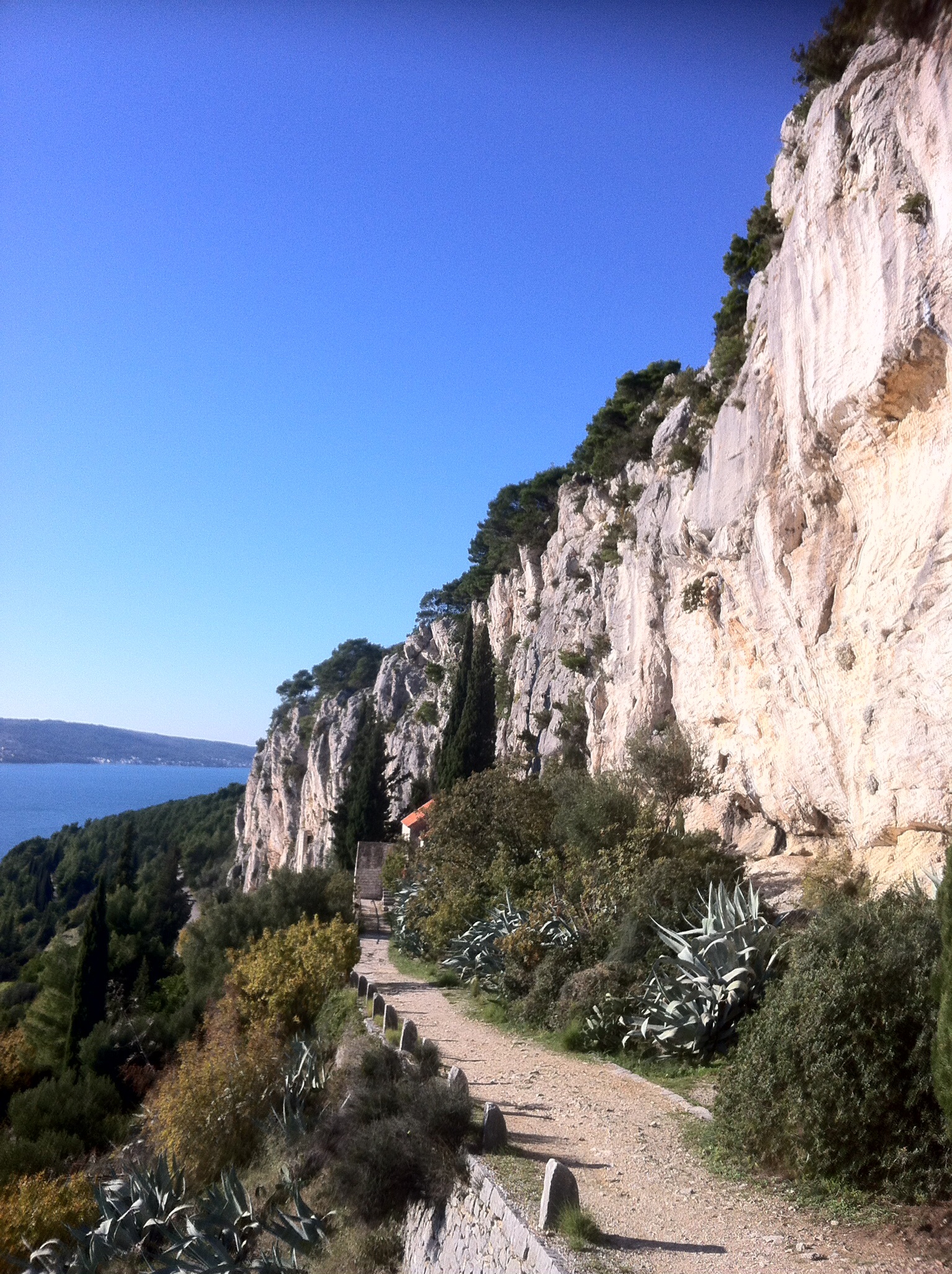 We take the stairs up in one continuous non stop climb, thirty seconds of breath gathering vibrations at the top and I am good to go on. Today we climb the very steep road to the fire tower atop the second peak of the Marjan Peninsula and pause for a few minutes to absorb the glorious views before beginning the descent to the waters below.