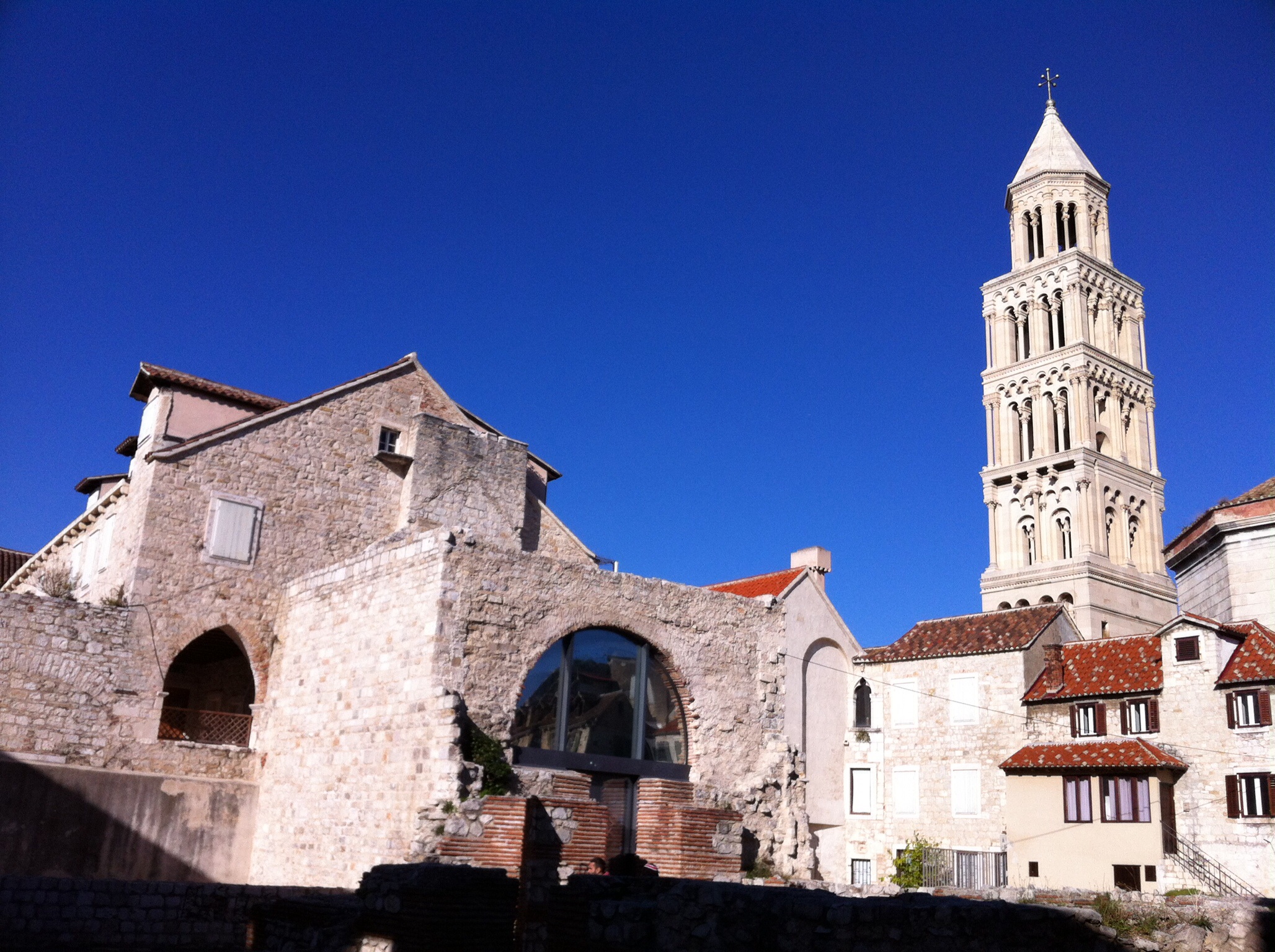 From a distance, as we were bussing through the entry roads into Split, the city gives the appearance of a soulless conglomerate of apartments and shopping centers. The main road into town had passed large cement plants with huge conveyors crossing above the road from quarries in the hillsides towering over the town.