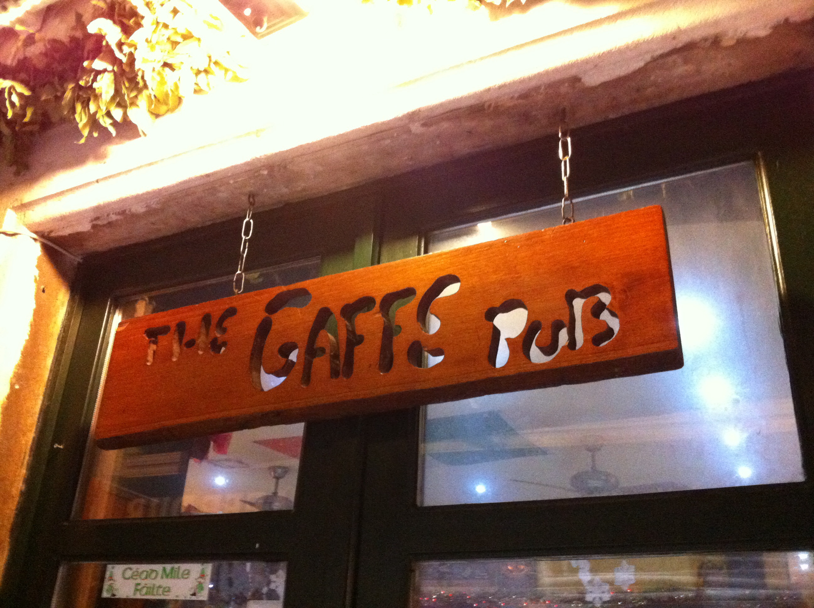 There are three Irish bars in the Old City (with nary an Irish person in sight). We head for the nearest which is called the Gaffe and order our usual round, a glass of white wine for Pam and a 500ml beer for me.
