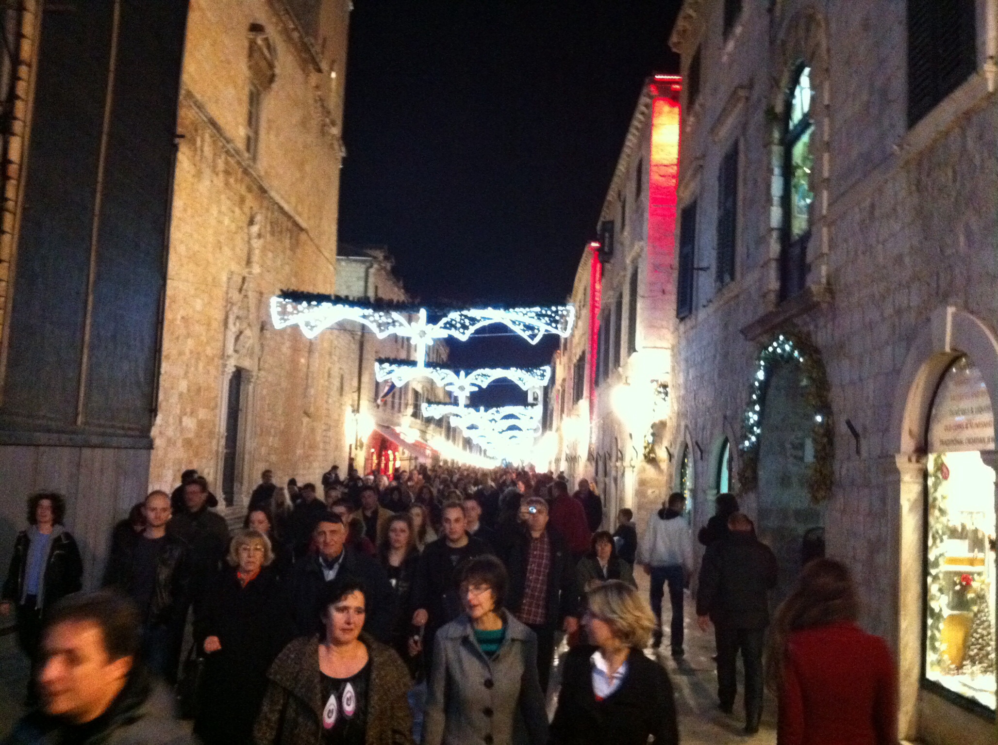 After hugs and kisses and best wishes for the New Born Year we forge our way back through the crowded Dubrovnik side streets.