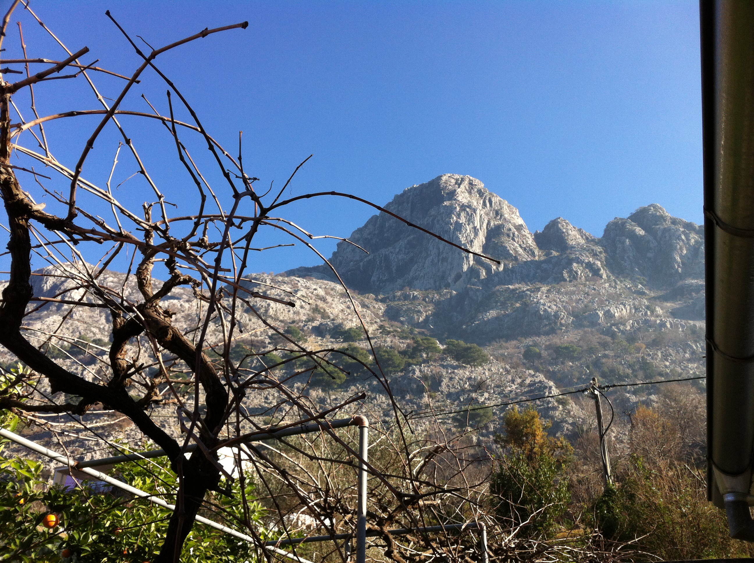 When I wake in the morning sporadic explosions are still occurring and a layer of smoke from wood cooking fires and fireworks is trapped atop the Kotor Bay waters by a thermal inversion.