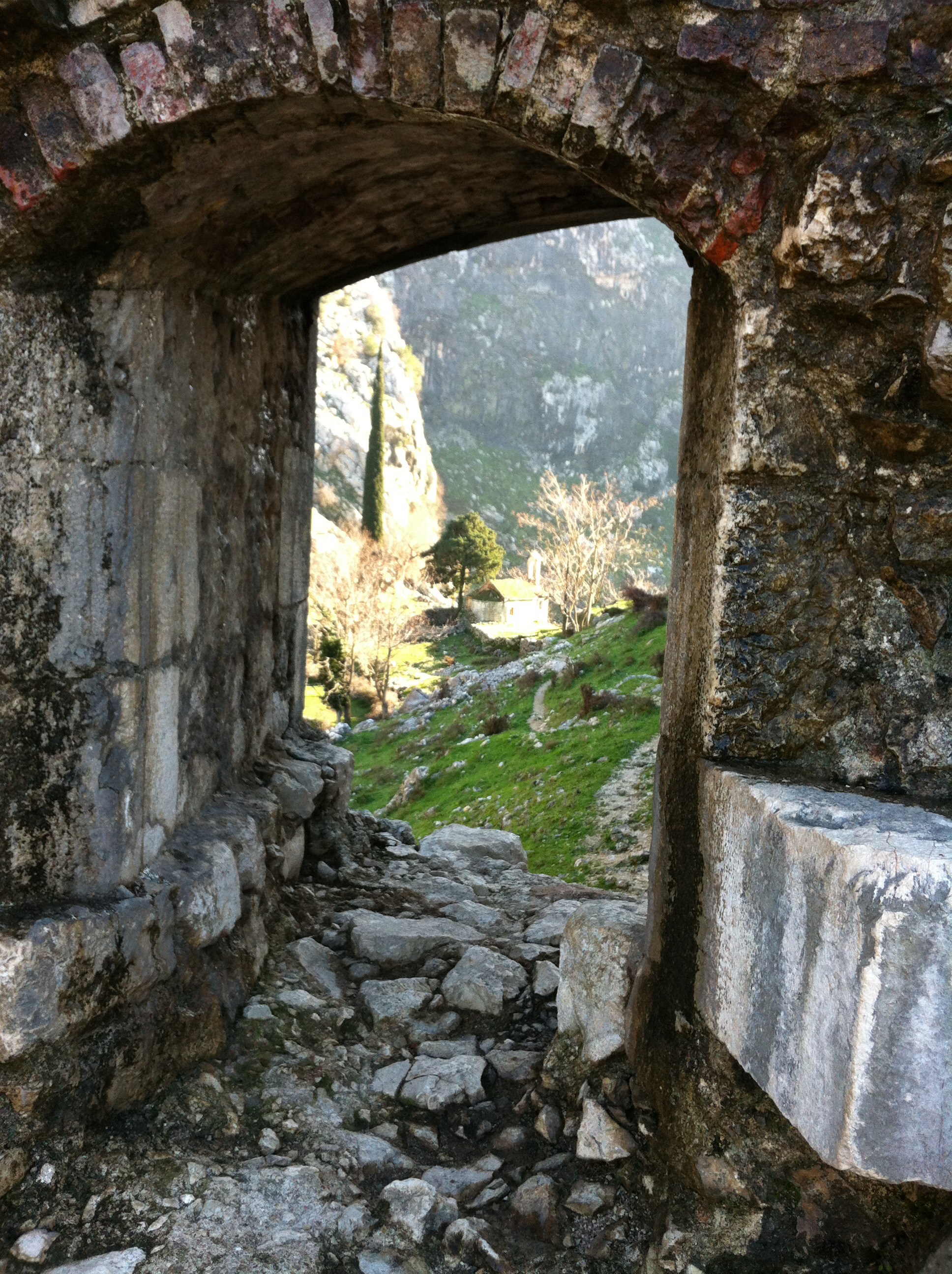Before we start our climb I am very keen to find where the fresh water streaming into the salt of Kotor Bay is coming from and we exit the old town via a little side gate and cross a narrow stone bridge to the road running along the stream on the other side.