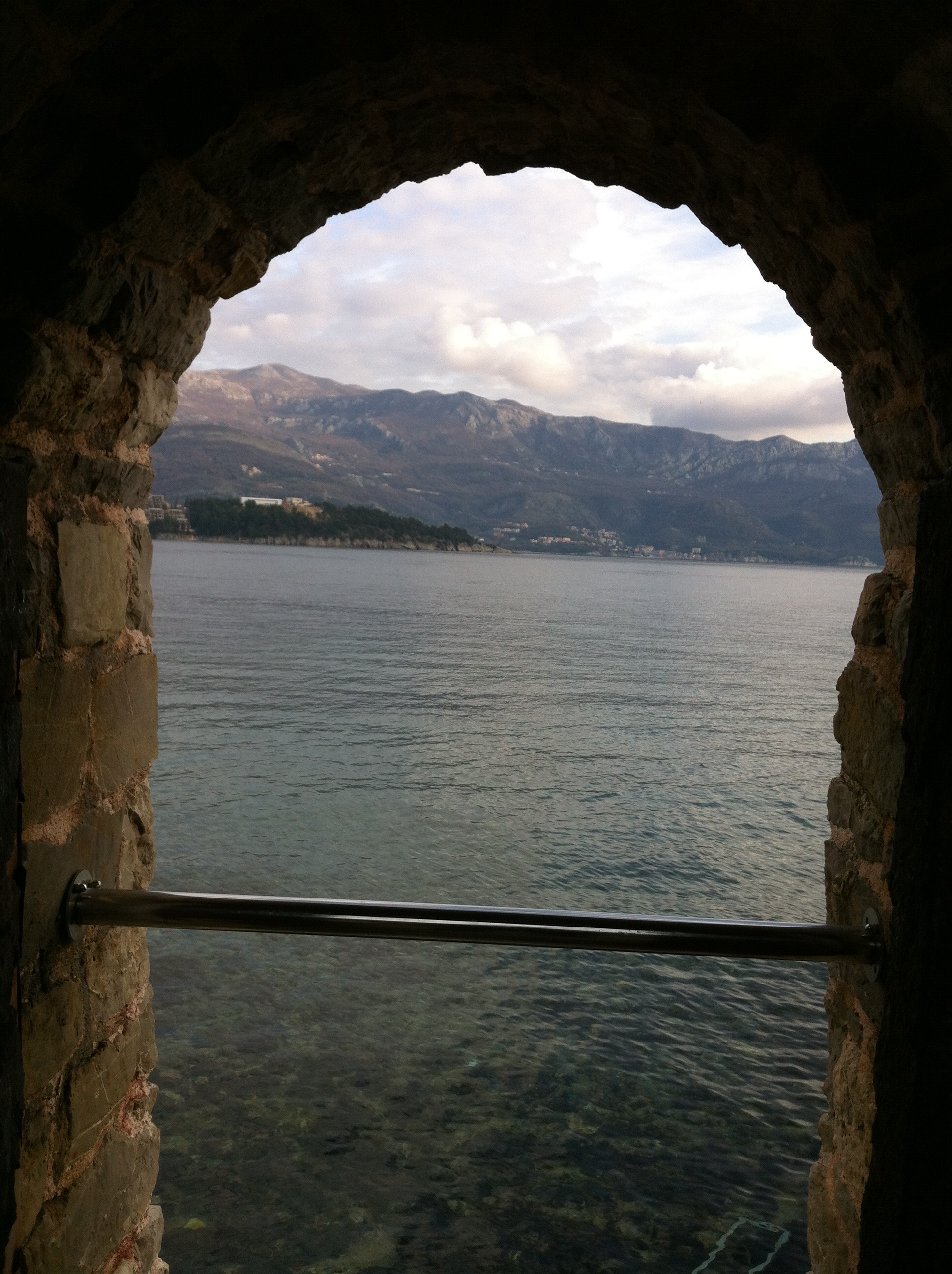 Stopping a few more times to pick up passengers we begin to wonder if we are going to make it to Budva intact. After another shorter tunnel we drive around a long hillside curve with the serene Adriatic to our right and drop into Budva.