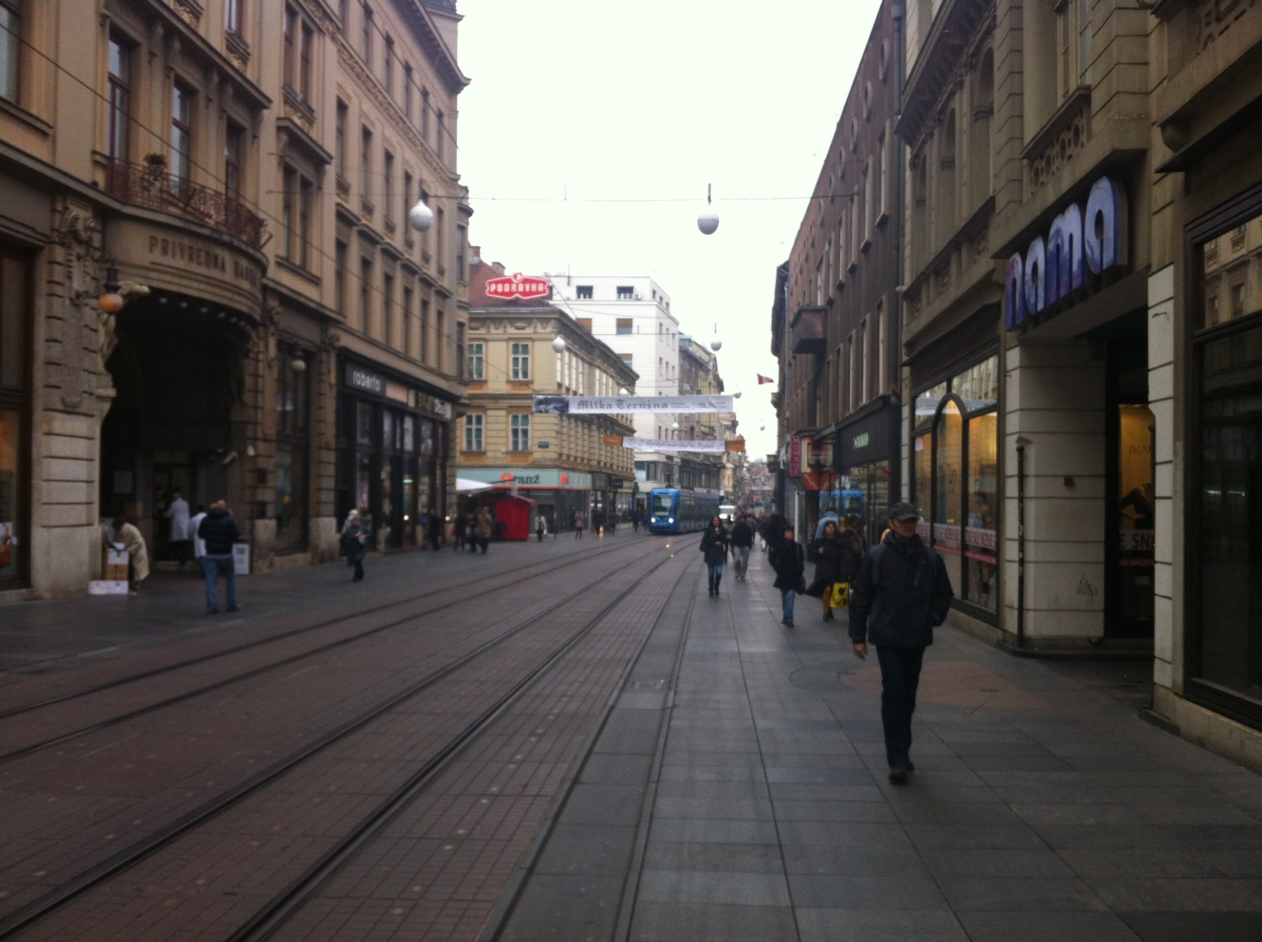Heavy lasting snow that is common during the Zagreb winter has failed to materialise this season. The night is cool and pleasant as we wander back through Ban Jelacic square after our enthusiastic landlady’s greeting.