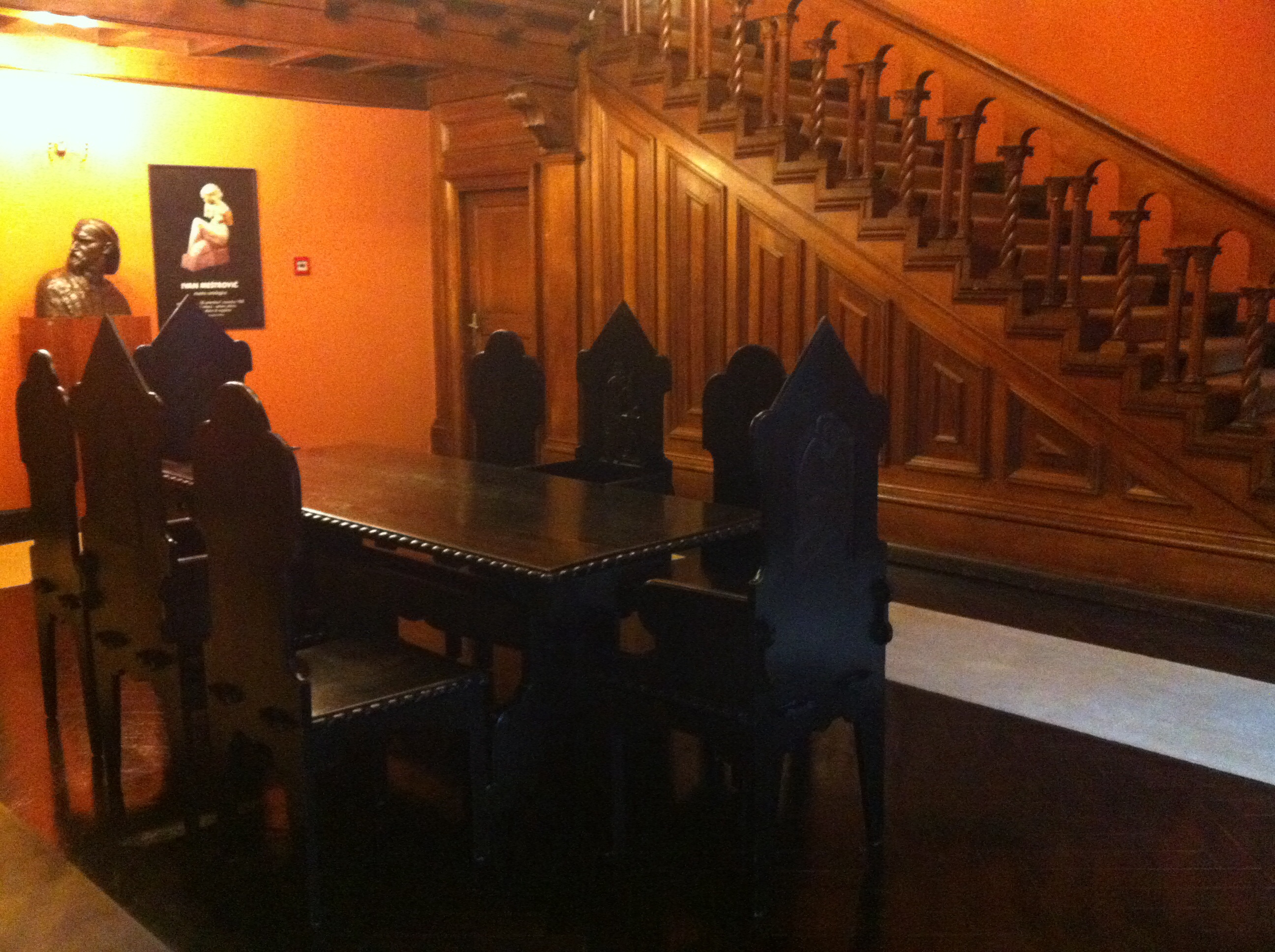 Our friendly guide tells us that Ivan Mestrovic was a workaholic who produced over 2000 works as well as designing buildings and crypts. She asks us if we have seen any of his work and we tell her a little of our travels in Croatia and Montenegro. The exhibition in Zadar, the massive statue in Split along with our disappointment in missing the large museum devoted to his work there. The awe inspiring mausoleum atop Mt Lovcen in Montenegro.
