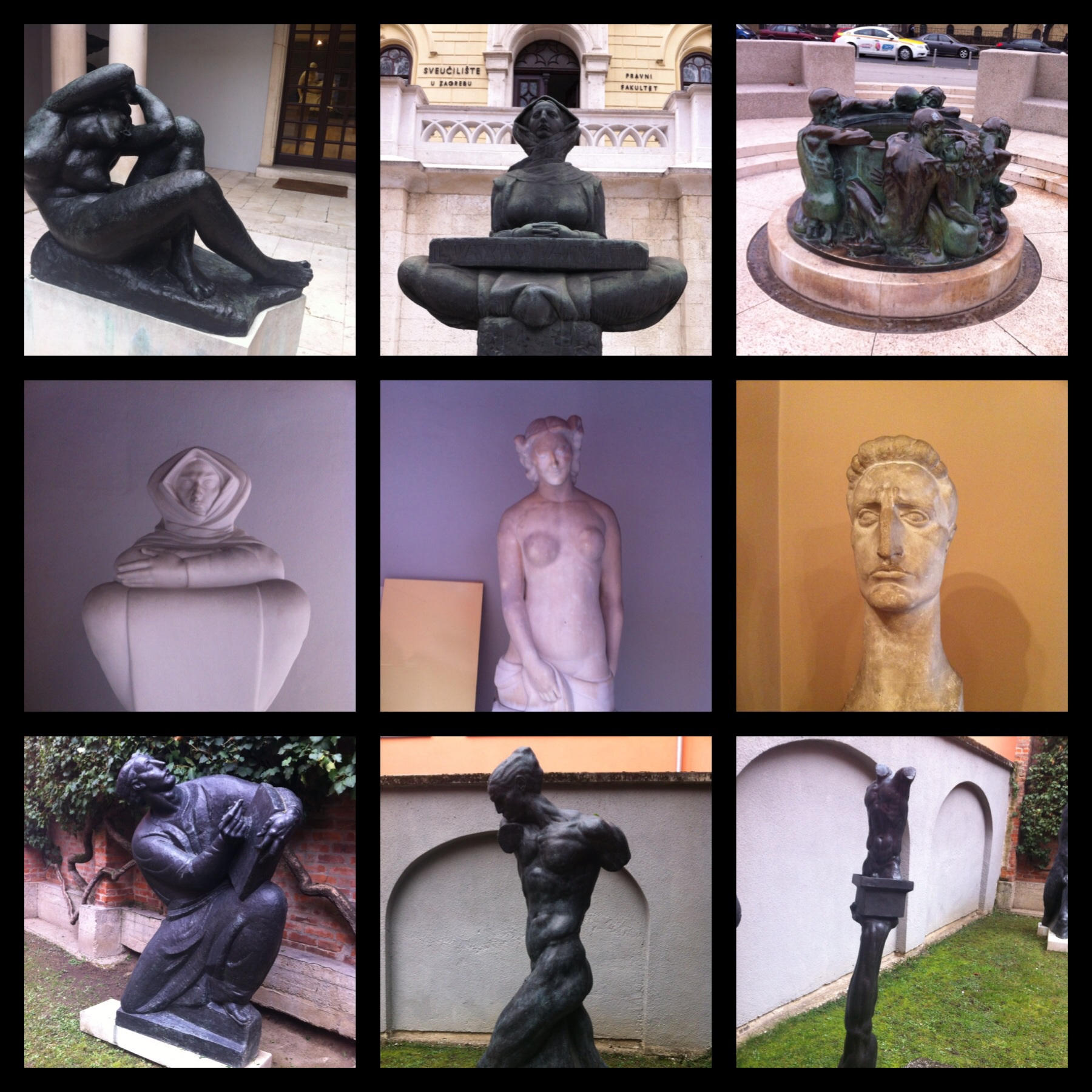 Across the street a Madonna sits in typical Mestrovic pose in front of the Zagreb University.