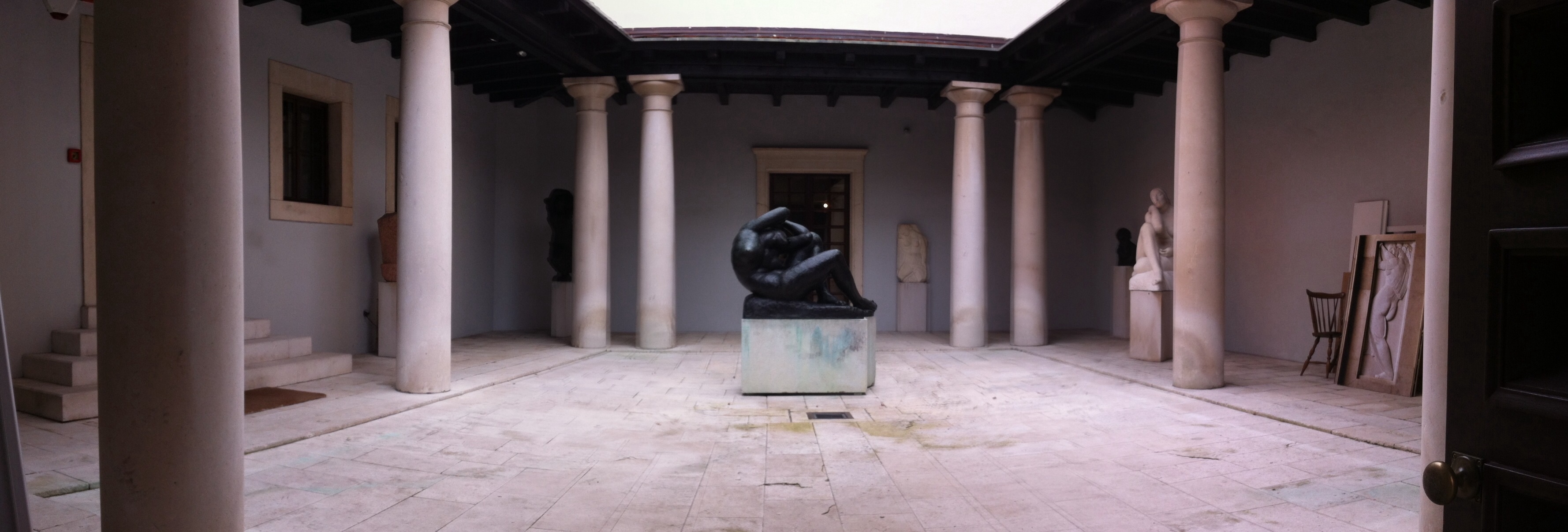 Beyond the first large room of the house/museum large glass doors lead to a green courtyard filled with black stone statues. Accompanied by no plaques bearing names or descriptions of the works on display the observer is left to their own imagination.