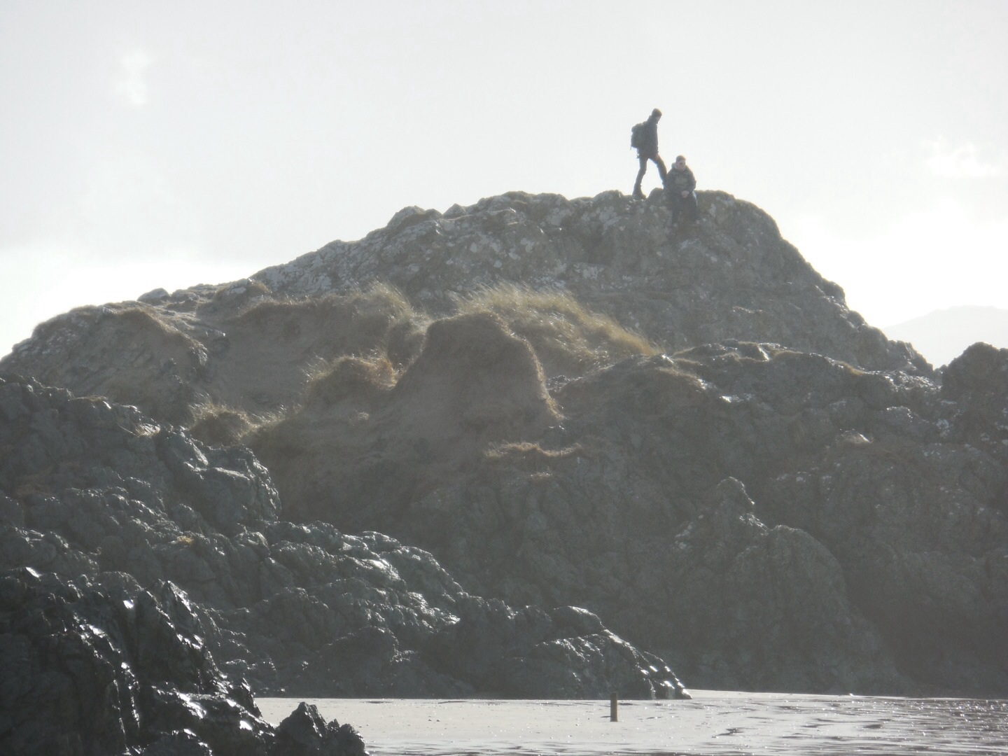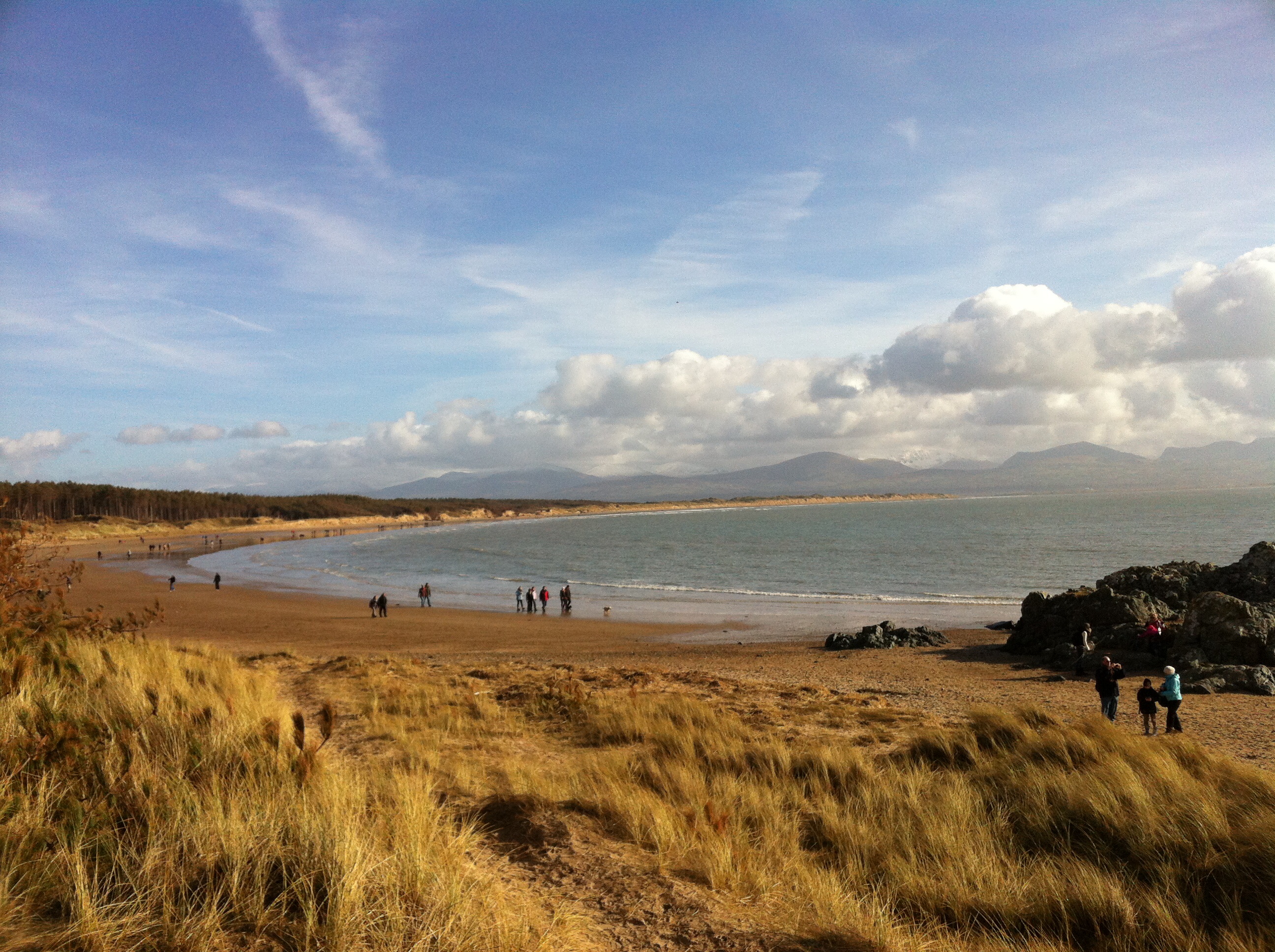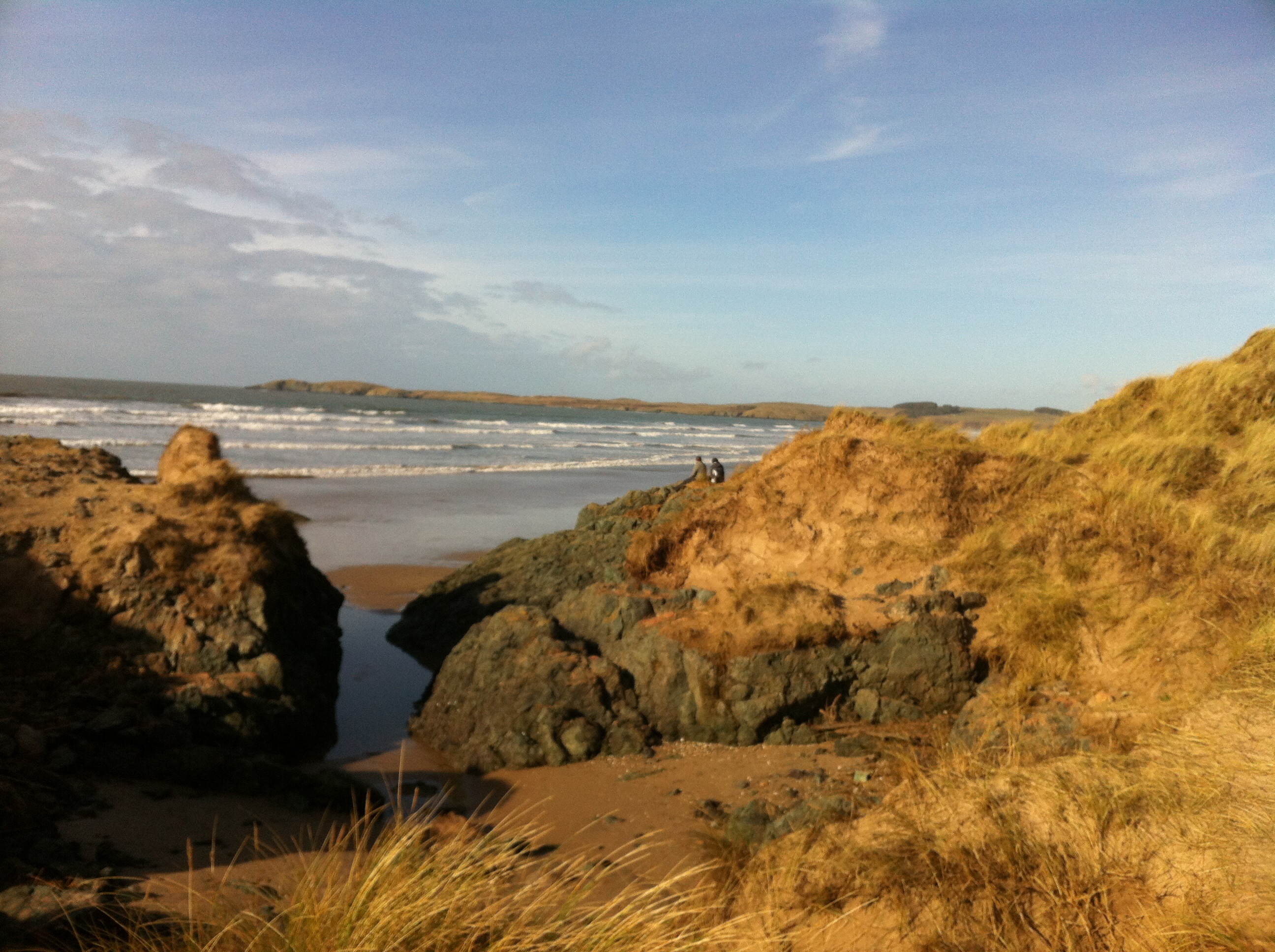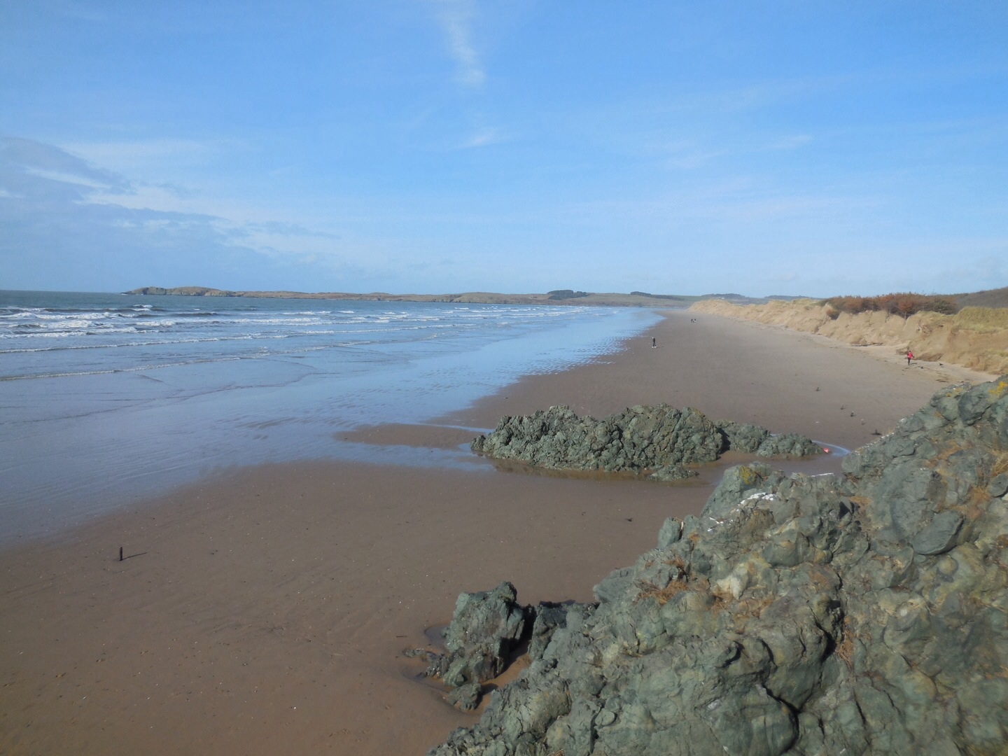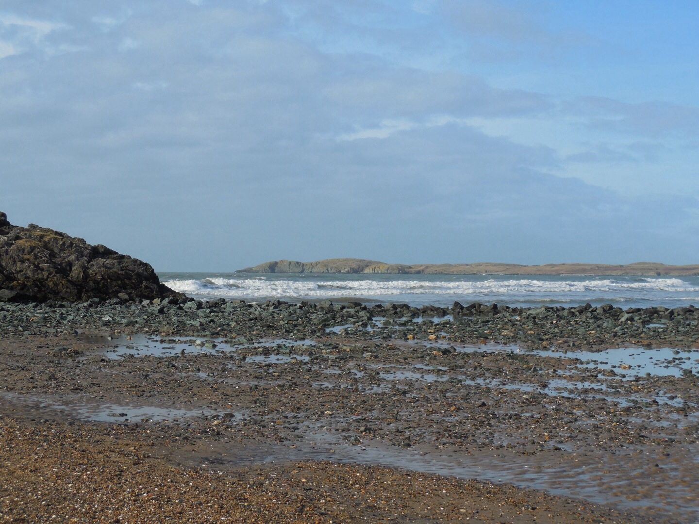 Low tide makes Ynys Llanddwyn a peninsula rather than an island. We climb the rocks that separate long stretches of beach and look Westwards.