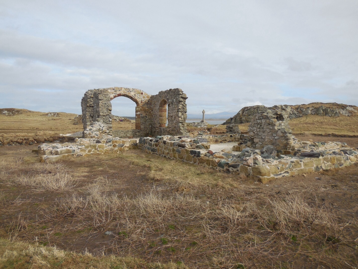 Structures remaining on Llanddwyn include ruins of a church built on Dwynwen’s original hermitage site during the 16th century.