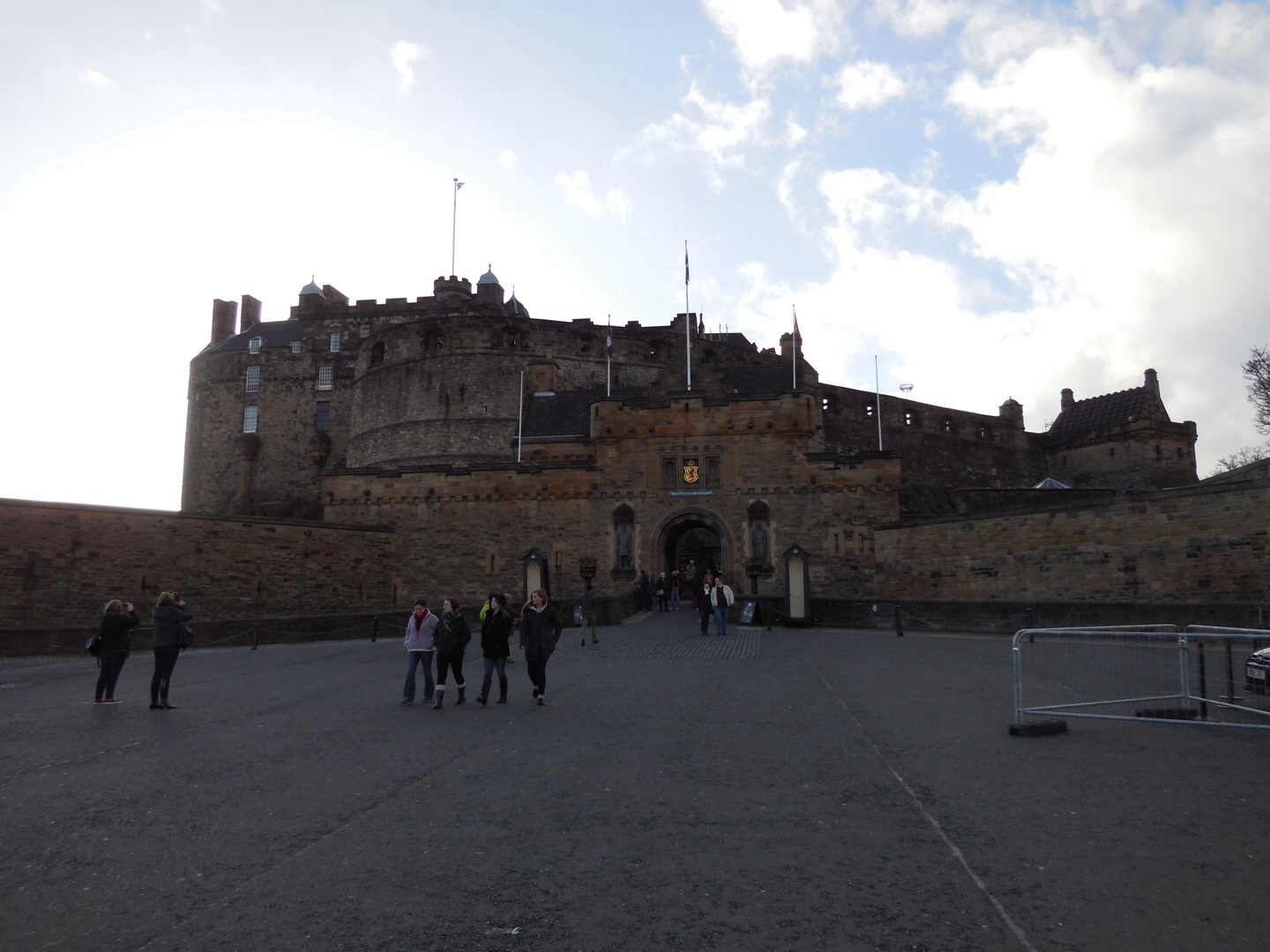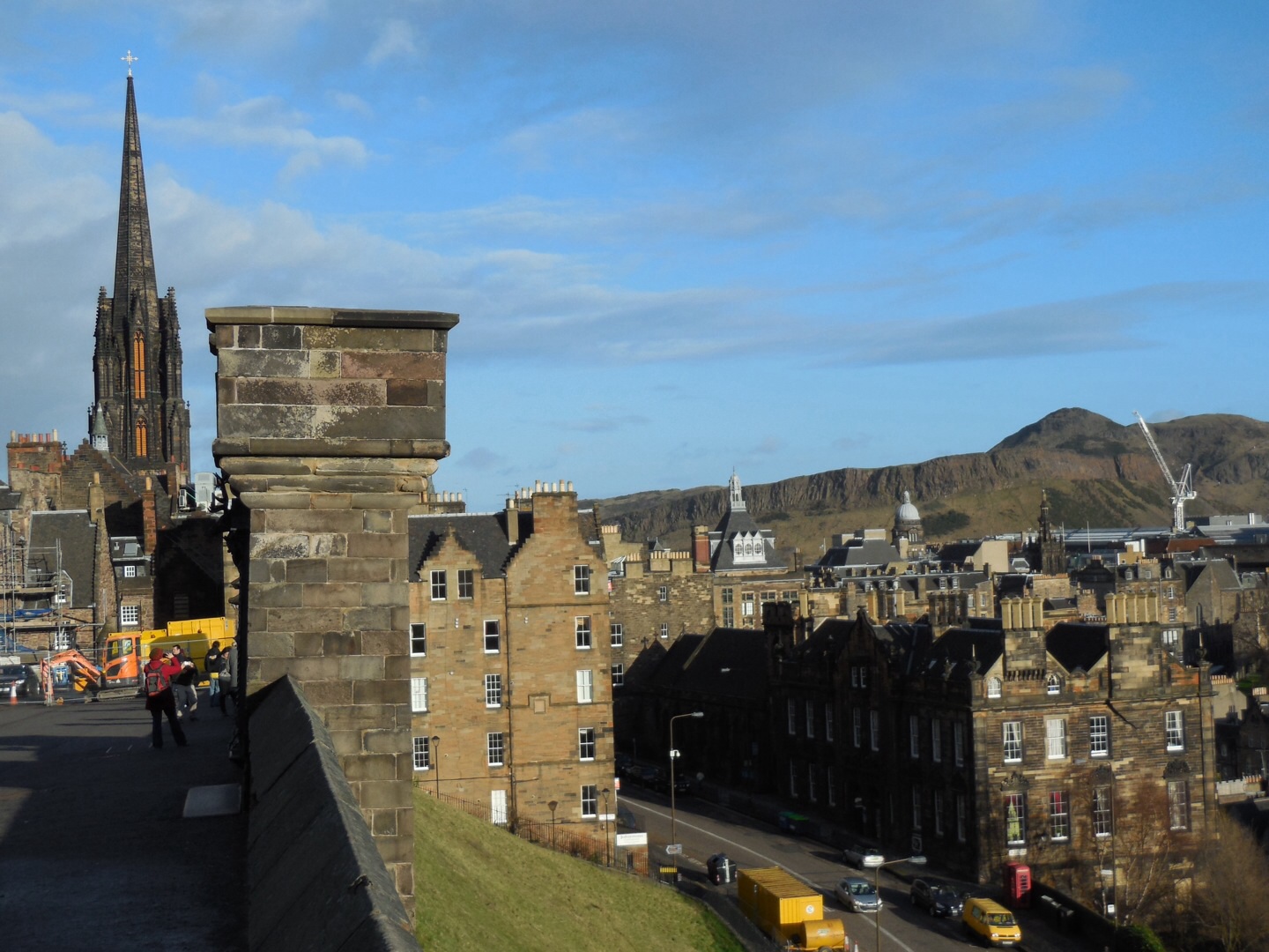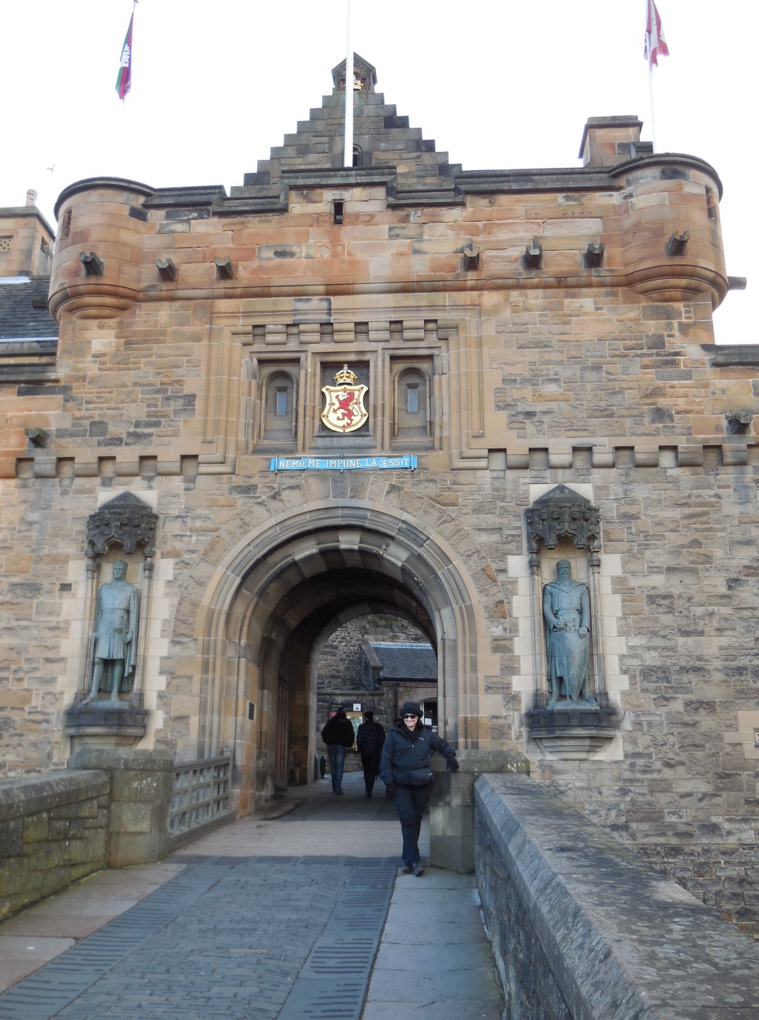 No matter as Edinburgh Castle rises above all the other rooflines. Turning right as we make our way down a sloping street the cliffs of castle rock topped by the walls of the castle itself make themselves blatantly apparent.