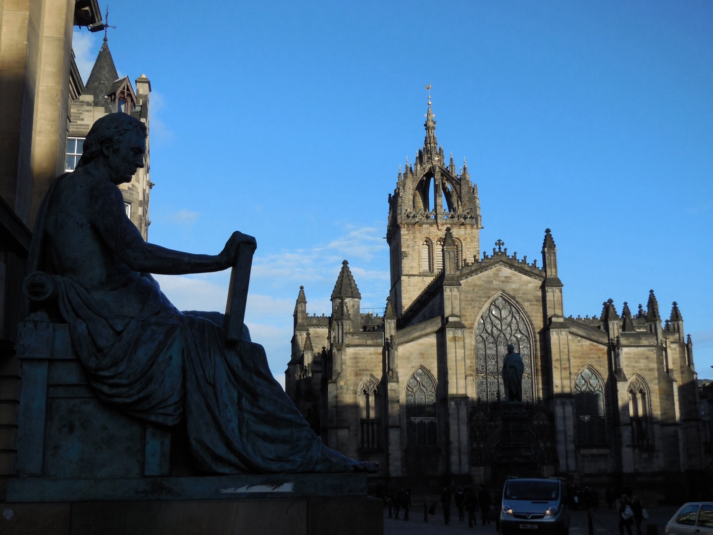 Today we are not entering the castle so after taking a few photos of the entry gate and surrounding vistas we retrace our steps down the Royal Mile and continue on downhill to St Giles Church.