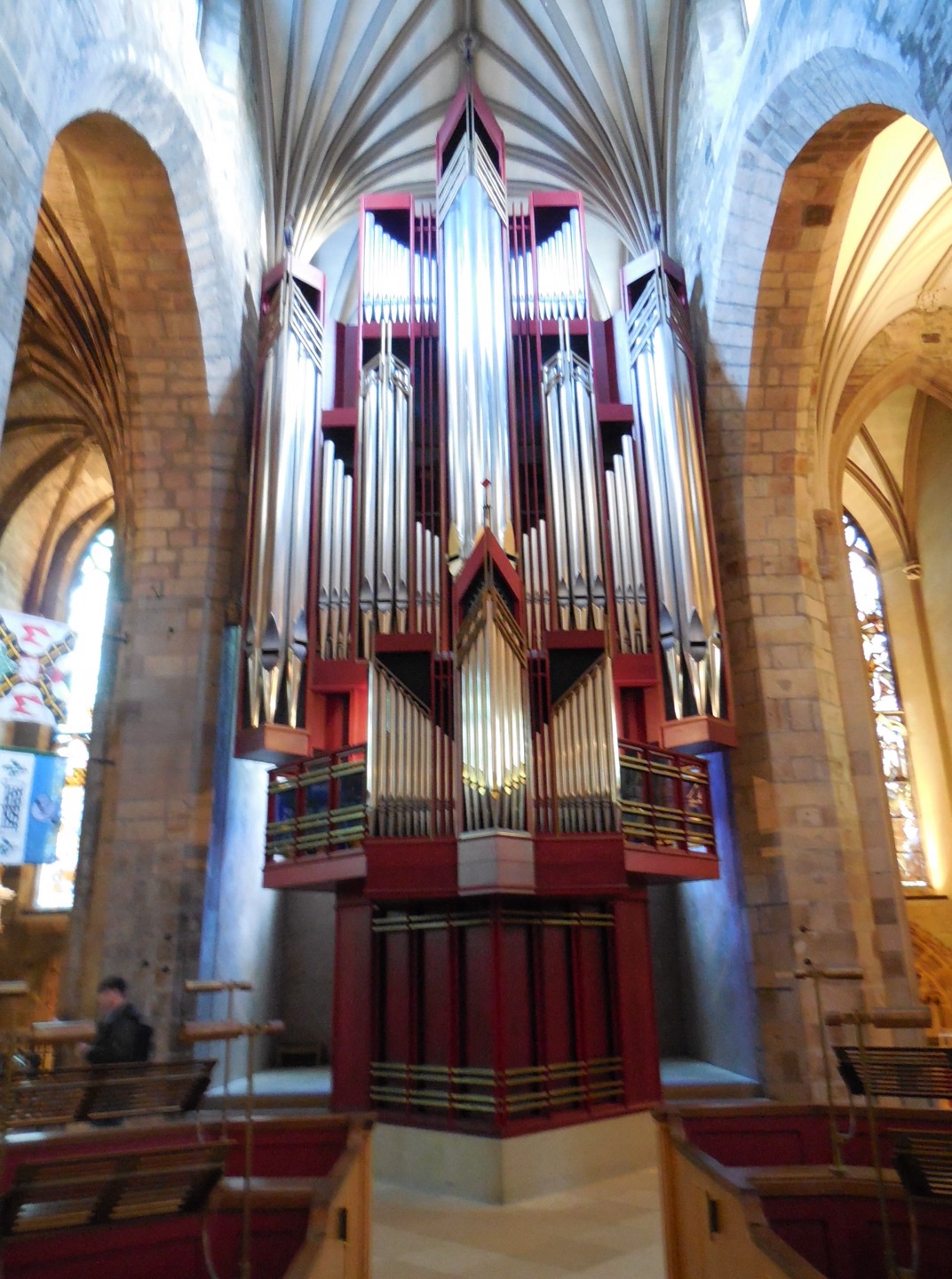 Inside the pipe organ is being played as we wander around which dramatically adds atmosphere. If you are a stained glass and leadwork fan get thee to St Giles church, Edinburgh, you won’t be disappointed.