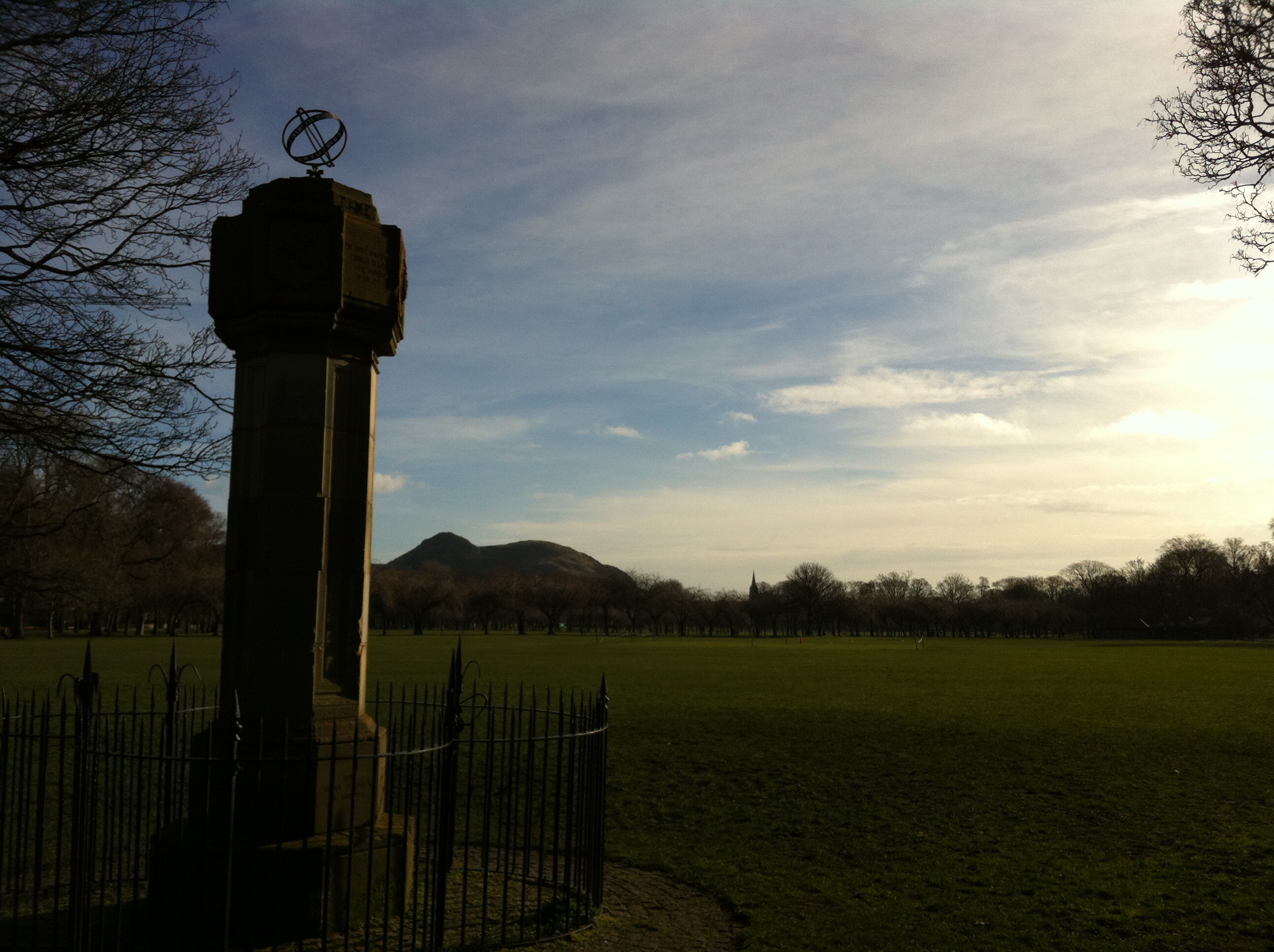 Arthur’s Seat, a dark volcanic plug at it’s centre, the craggy dominate feature.
