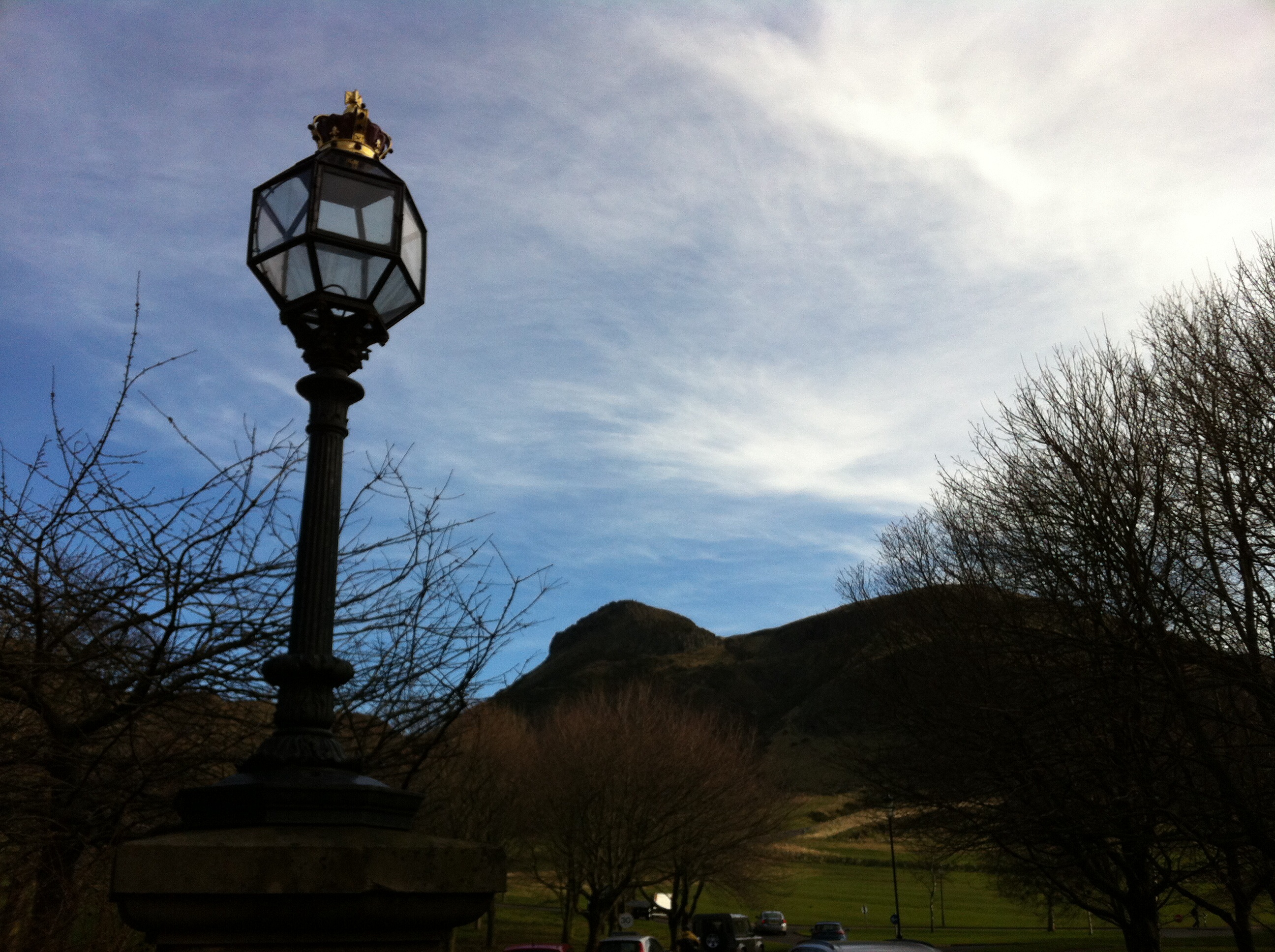 Pam takes the opportunity to duck into the corner supermarket as our friendly guide helps me find an optimal route to Holyrood Park on the tourist map.