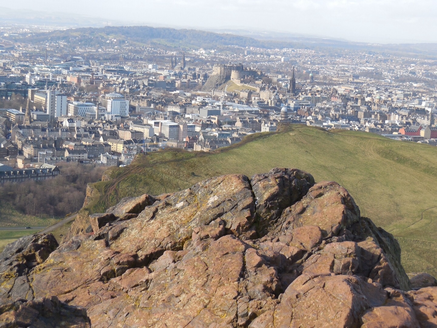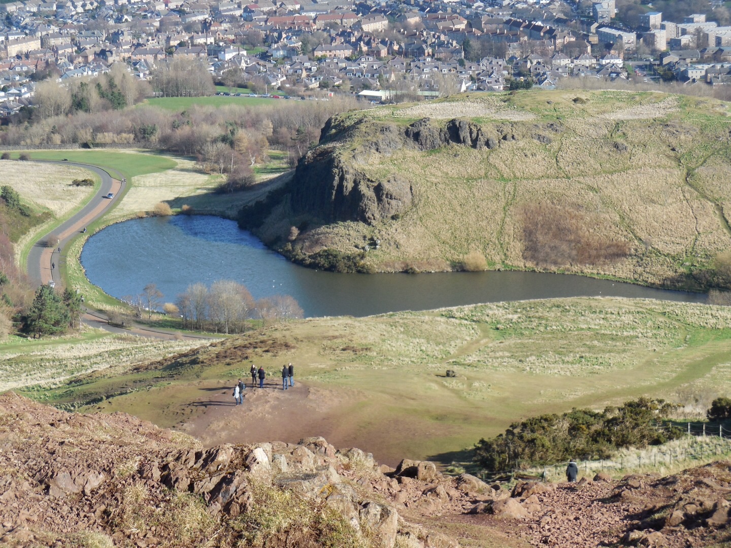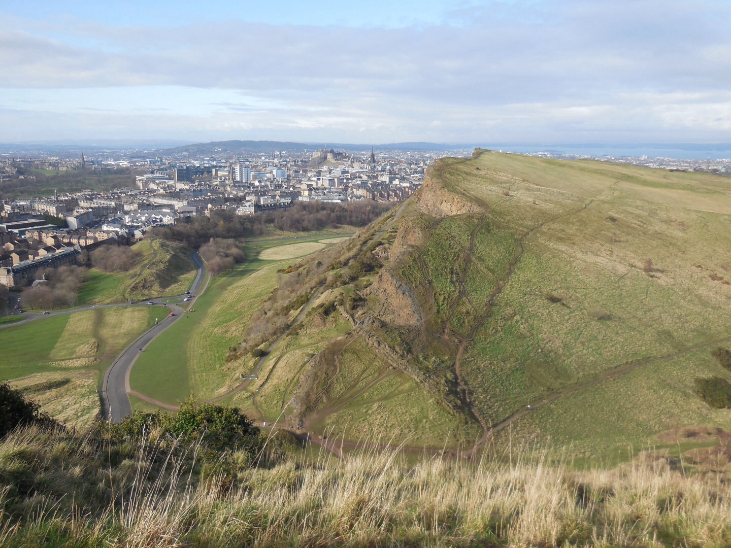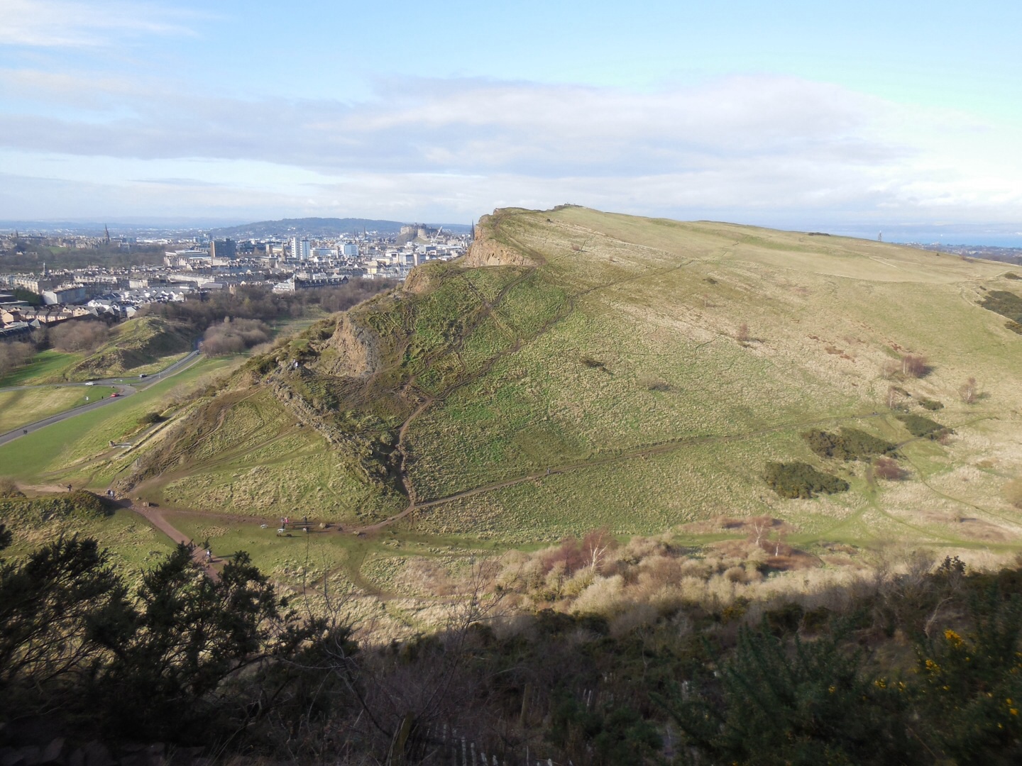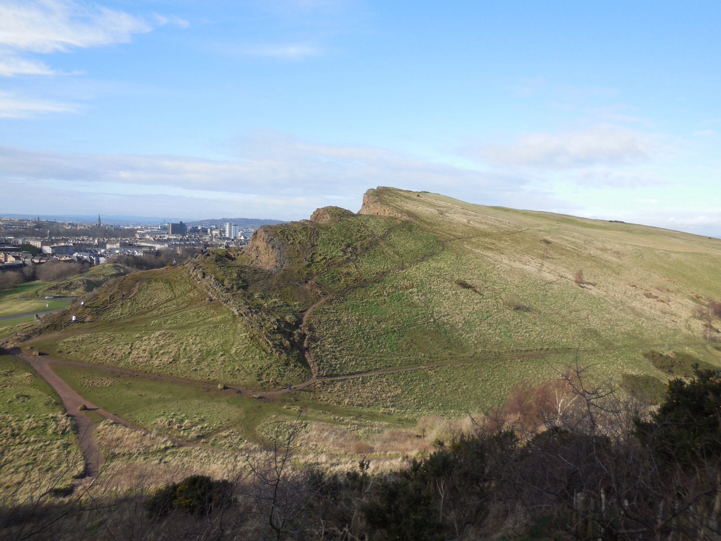 This is how the Salisbury Crags formed and became basalt cliffs between Arthur’s Seat and the city centre. From some angles, Arthur’s Seat resembles a lion couchant. Two of the several extinct vents make up the ‘Lion’s Head’ and the ‘Lion’s Haunch’.