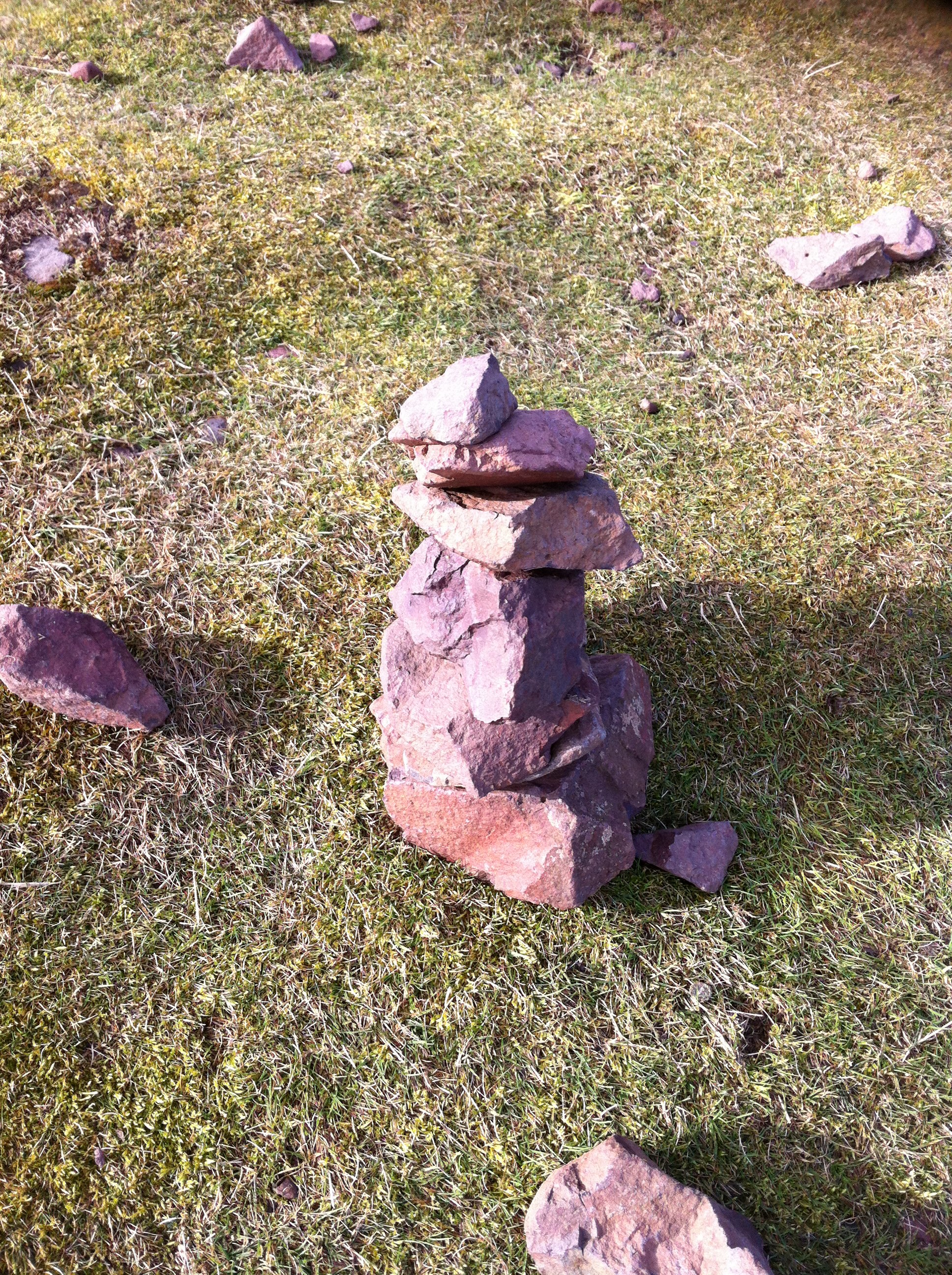 On the final grassy expanse between this crest and Arthur’s Seat Pam has built a little ‘Camino Tower’ from the rocks strewn over the surface.