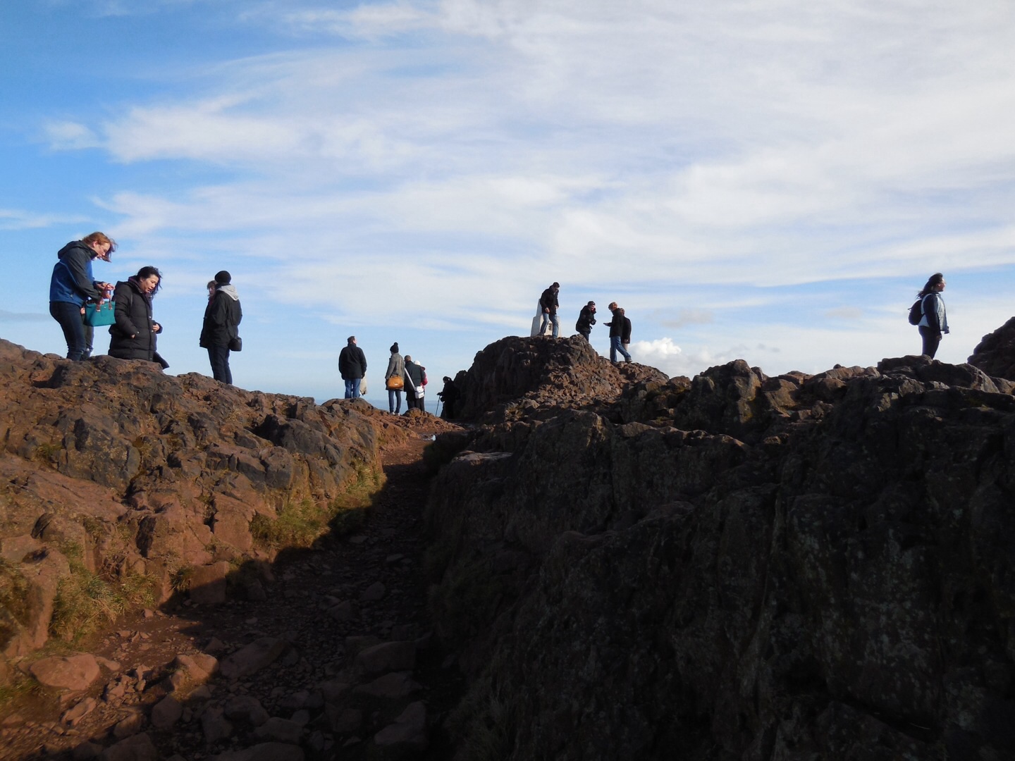 Today is extraordinarily fine, cool air carries a vibrancy in its flow, Edinburgh locals and tourists alike crawl over the grassy eastern face in front of Lion’s Head.