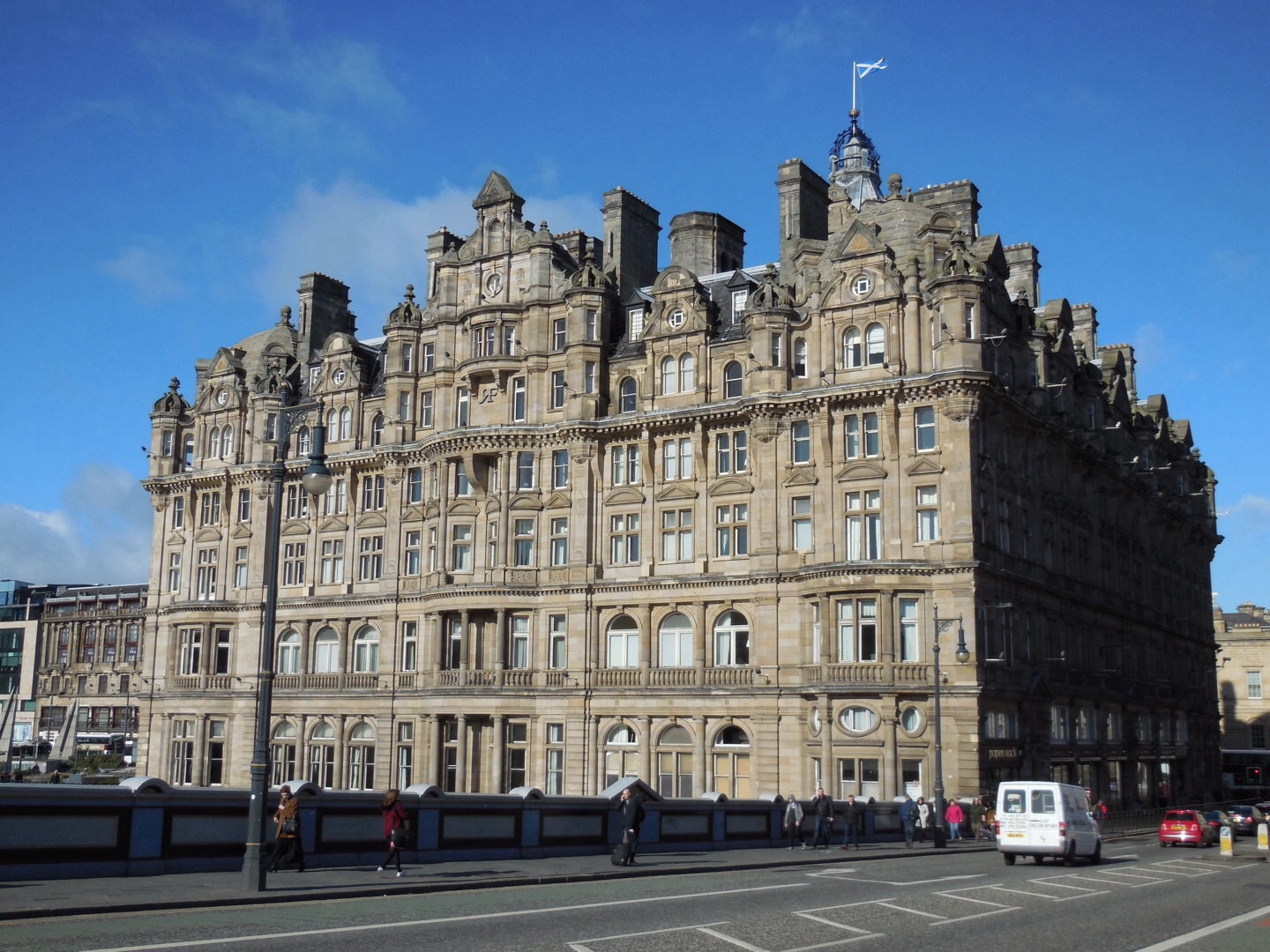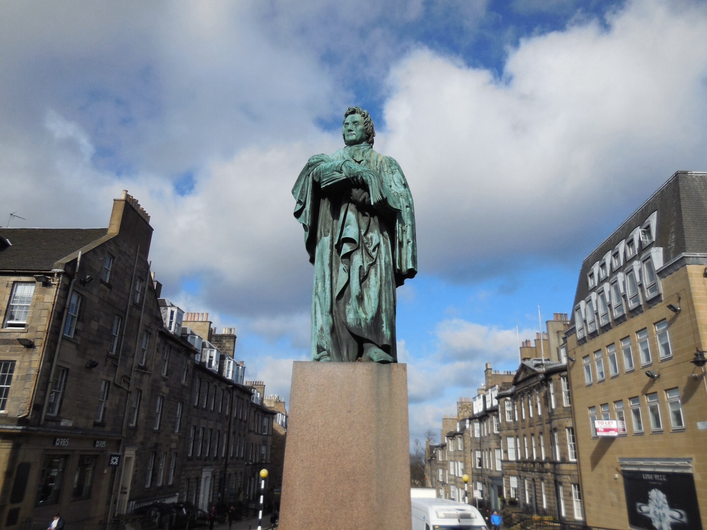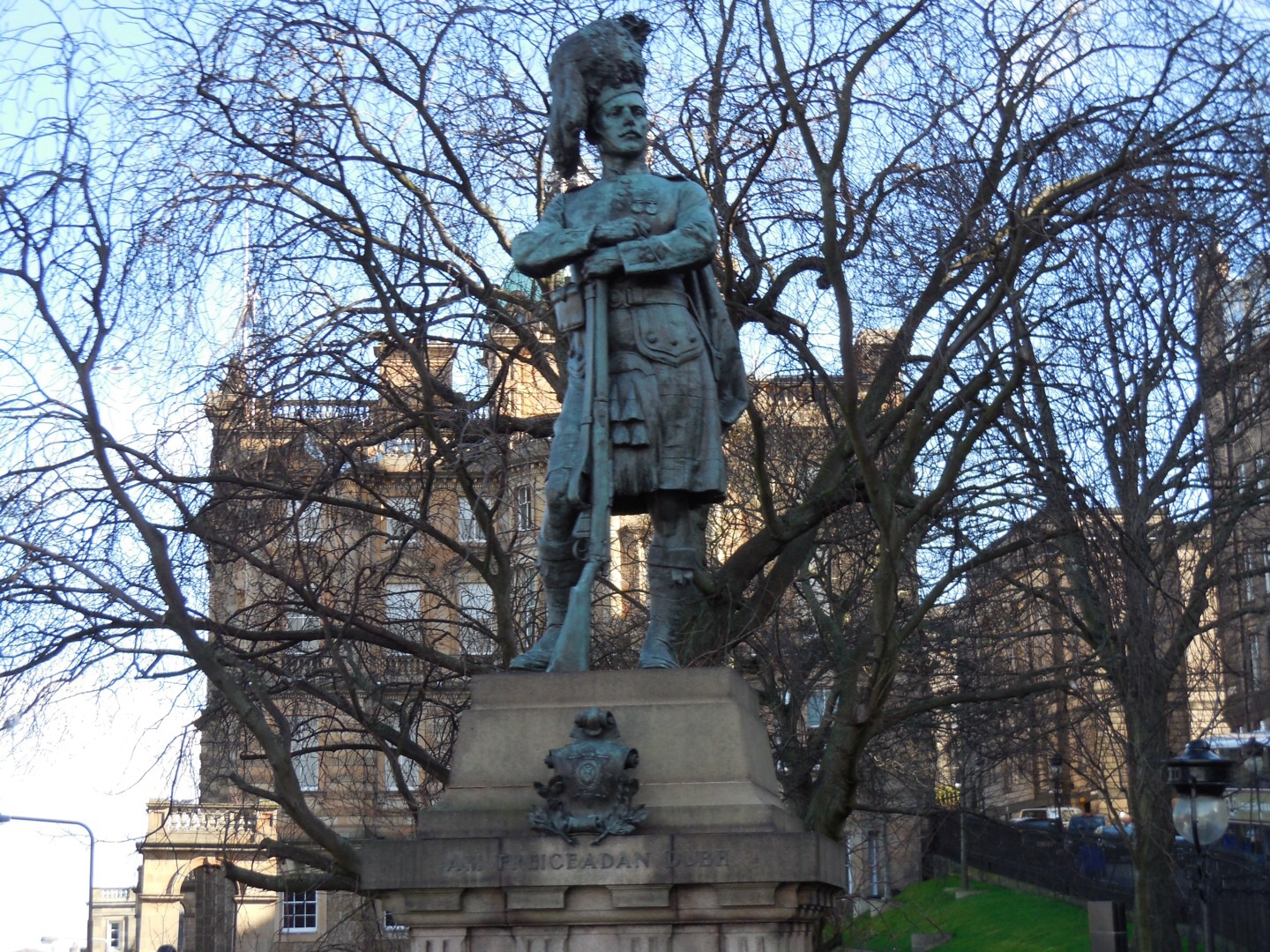 Crossing the wide North Bridge over the glass roofed buildings of the train station and shopping mall offers great views of the Regent Gardens to the East where the Dugald Monument, The Nelson Monument and the National Monument of Scotland stand atop Calton Hill.