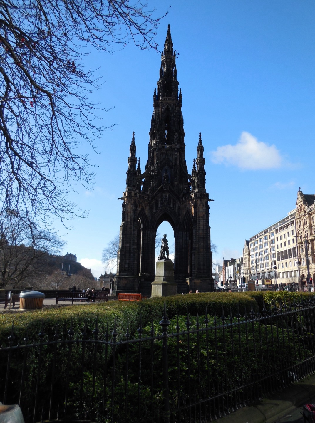 We turn left onto Princess Street and make our way up to the junction of Cockburn Street where the enormous intricate soot blackened towers of the Scott Monument thrust towards the sky.