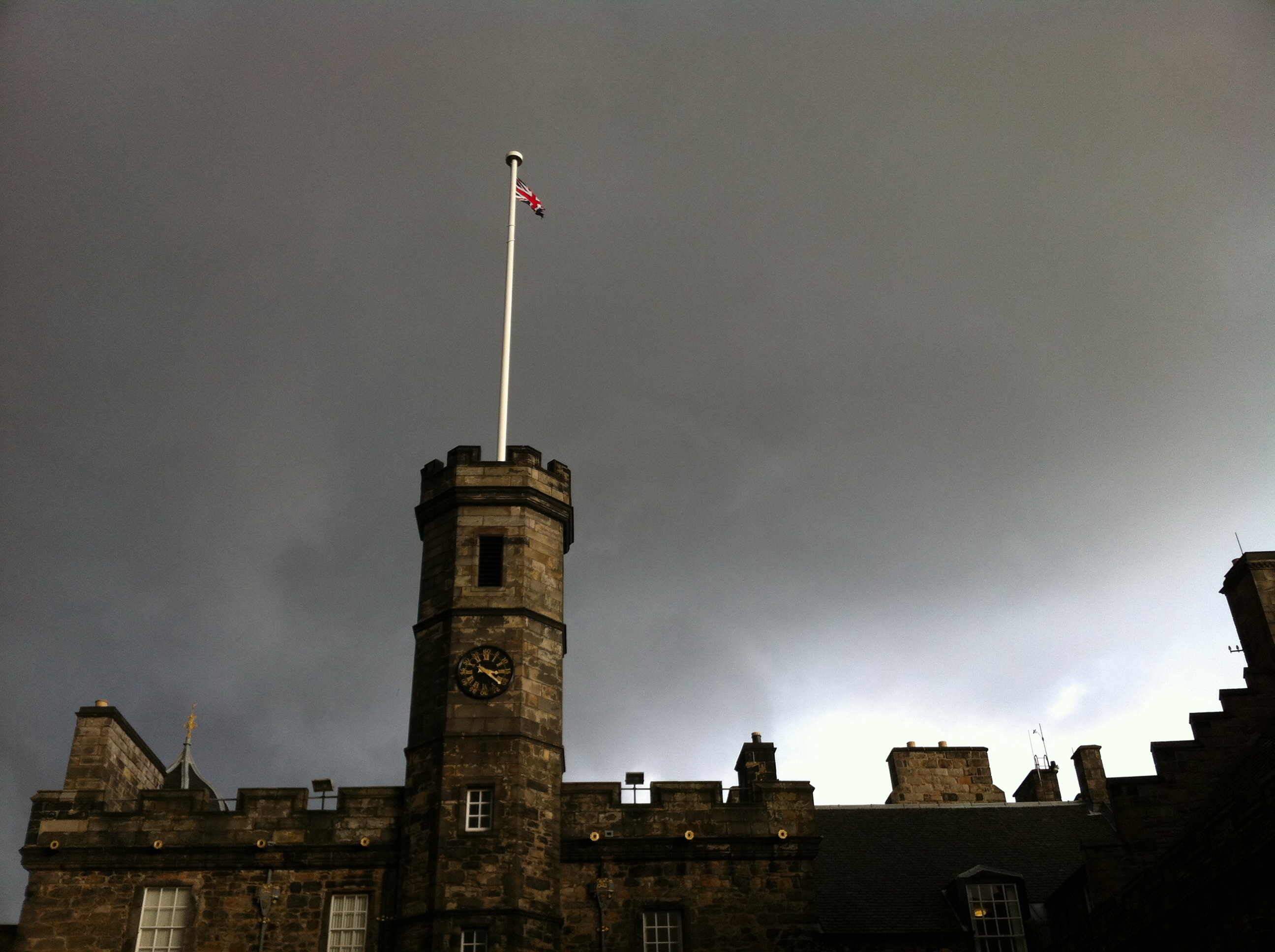 Seeking shelter we tour the interior of the Royal Palace where an informative synopsis of Scottish history and historical objects culminates inside the layered steel walls of a genuine vault that safeguards the Honours of Scotland, the Crown, Sceptre and Sword of State.