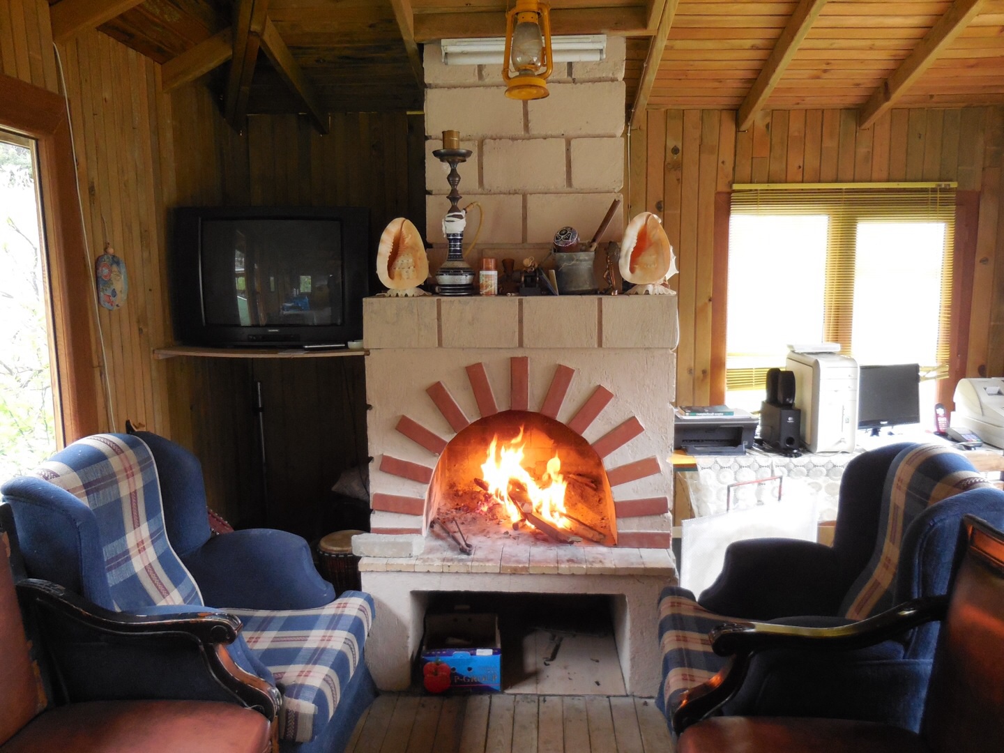Meals are served in the dining hall where a fire warms the room morning and evening. In the corner sits a computer that seems to be shared within the community. People come and go checking Facebook, young children play computer games.