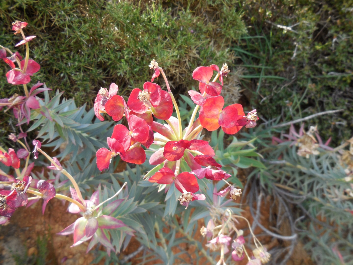 At first the path is obvious however we soon encounter radiating goat tracks and lose the markers. After casting around with backpacks off for ten minutes Pam finally finds a marker hidden on the side of a dry stone walled water course.