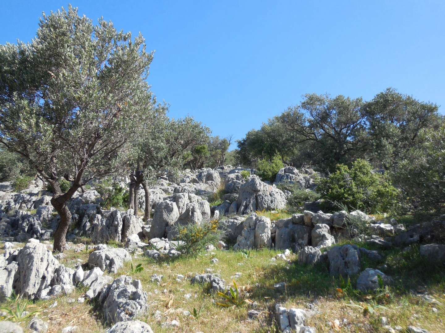 Up and up we climb, not a marker in sight. The day is hot and the climb is steep. By now Pam is wanting to turn back and retrace our steps however I insist on keeping us climbing thinking eventually the path we are on will meet at the top with the Lycian.