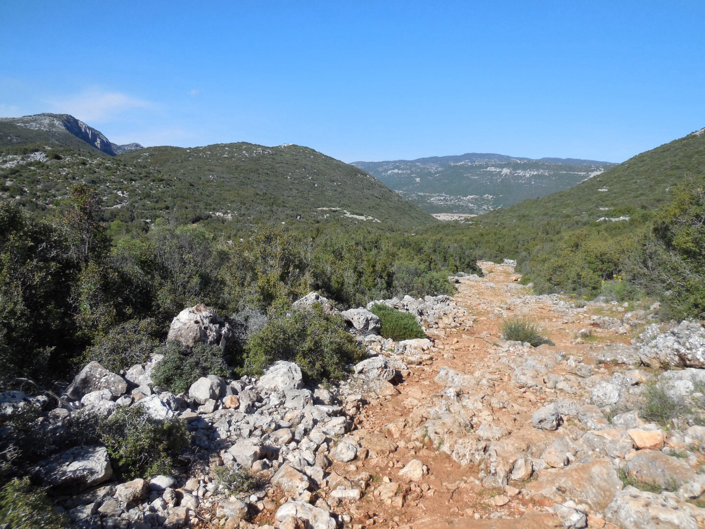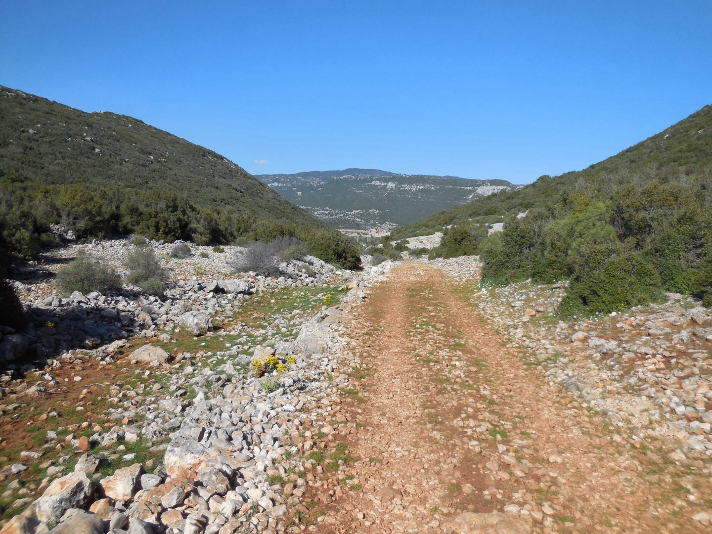 Pam and I consult the infuriating guide and mistakenly read a paragraph or two ahead of where we actually are. Our Australian friend Kay has put us on to a GPS app MapsWithMe for locating paths loaded on OpenStreetMaps and thinking I am acting in accordance with both the guide description and this iphone app we turn right and keeping the valley mosque on our right take a left turn up a gravel path where the bitumen turns sharply.