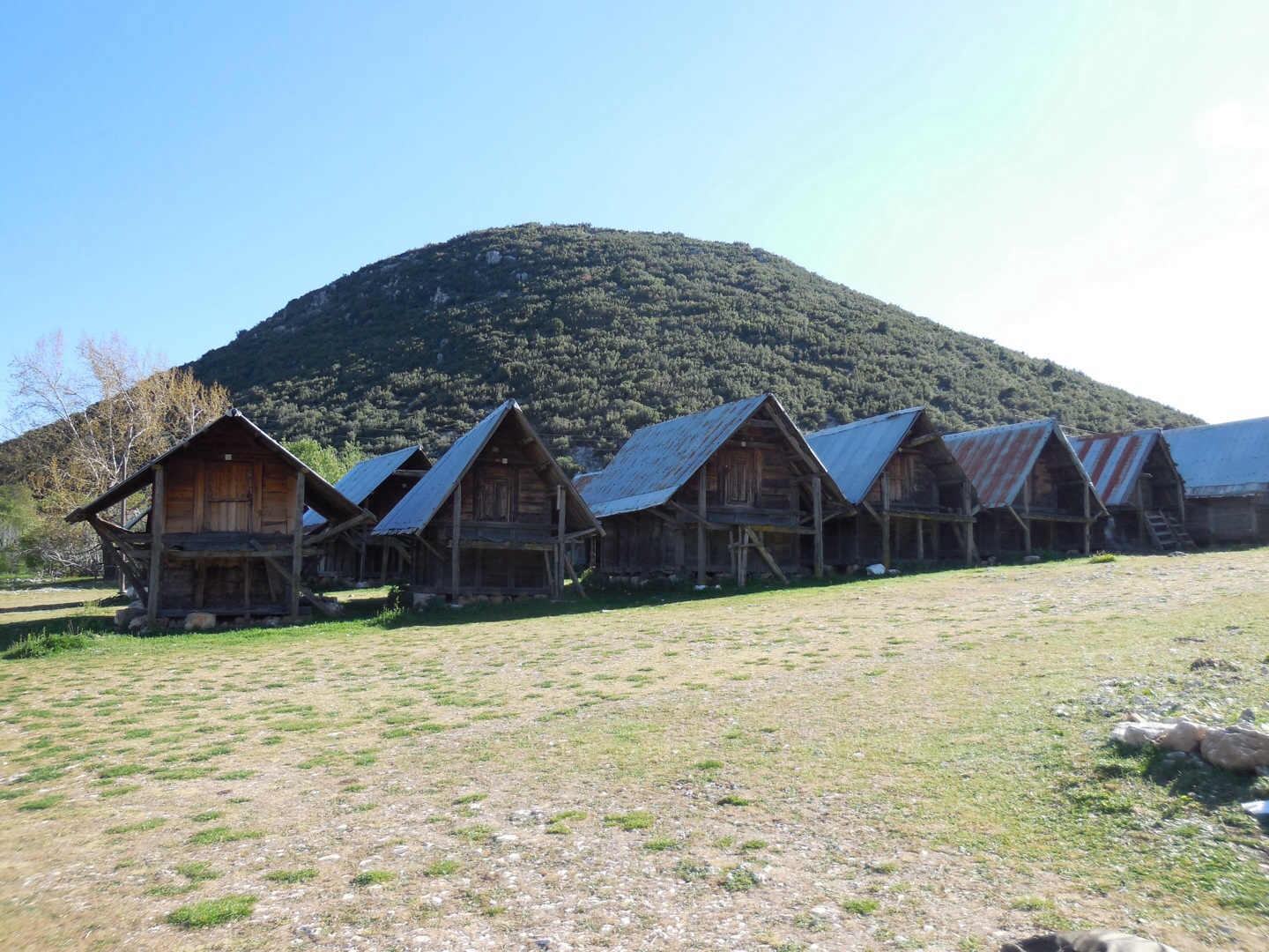 The road surface smooths, I catch sight of some buildings and we risk having another drink. Soon we are passing old locked wooden storage huts on the outskirts of Bezergin which is a very spread out village that occupies the green valley below.