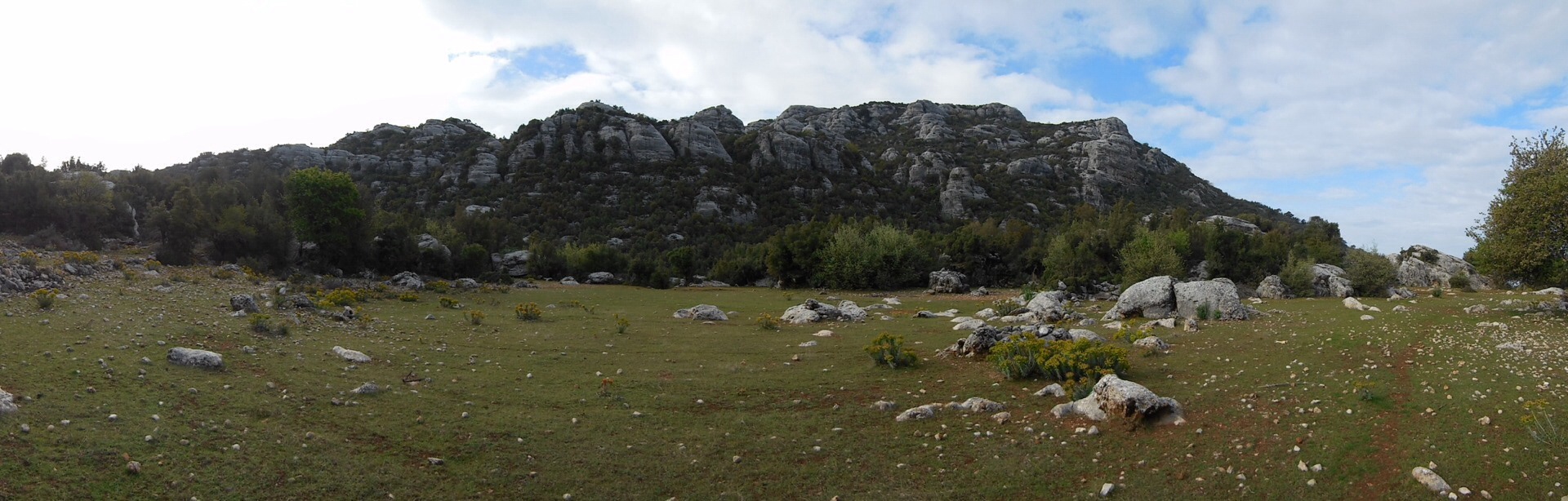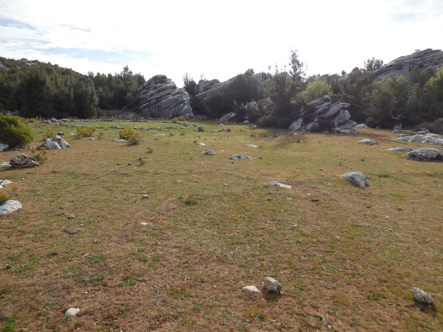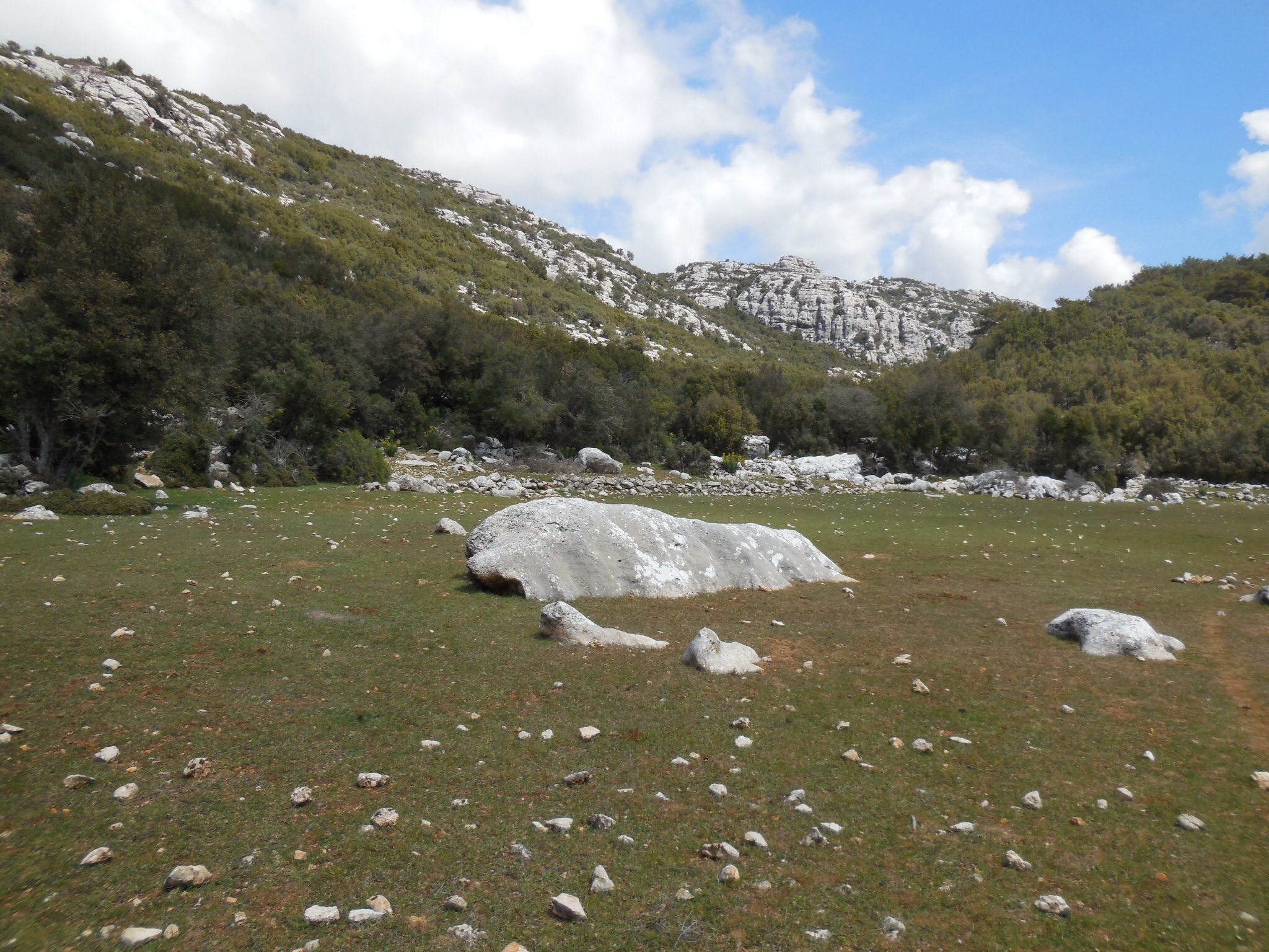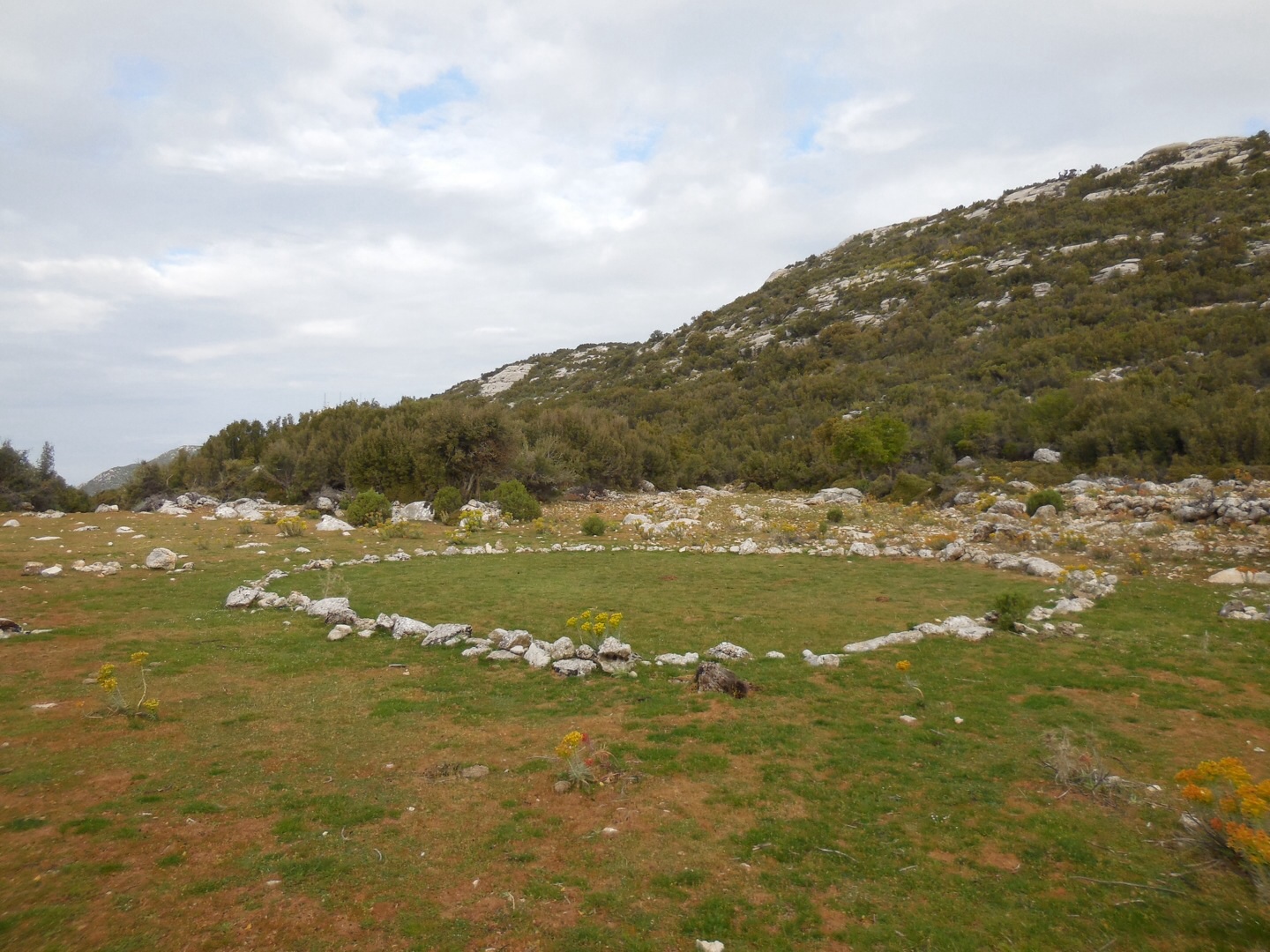 Thankful for a few hundred meters of easy walking we take another rest in the shade on large flat stones of nearby ruins, masoned thousands of years prior to our arrival, that lie jumbled in the trees and shrubs nearby an abandoned shepherds hut at the end of the flat expanse.