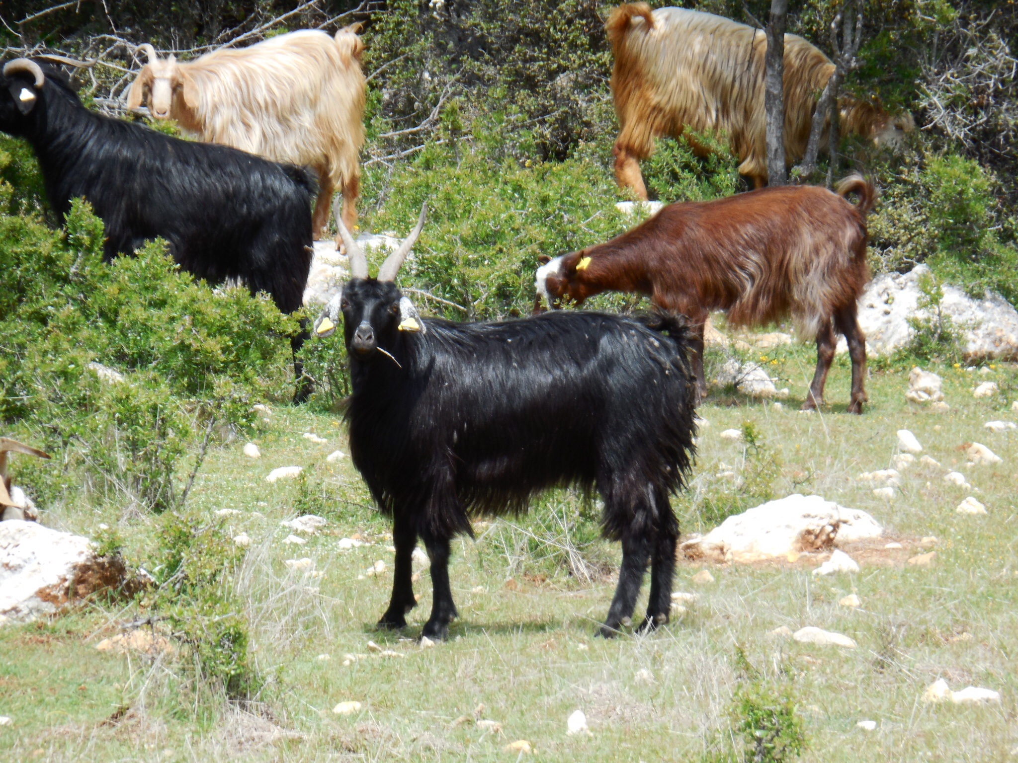Another flat valley of grass and stones awaits beyond the bushes and ruins. In the distance a large herd of goats is making their way towards us. Our relative velocities close the gap between us quickly.