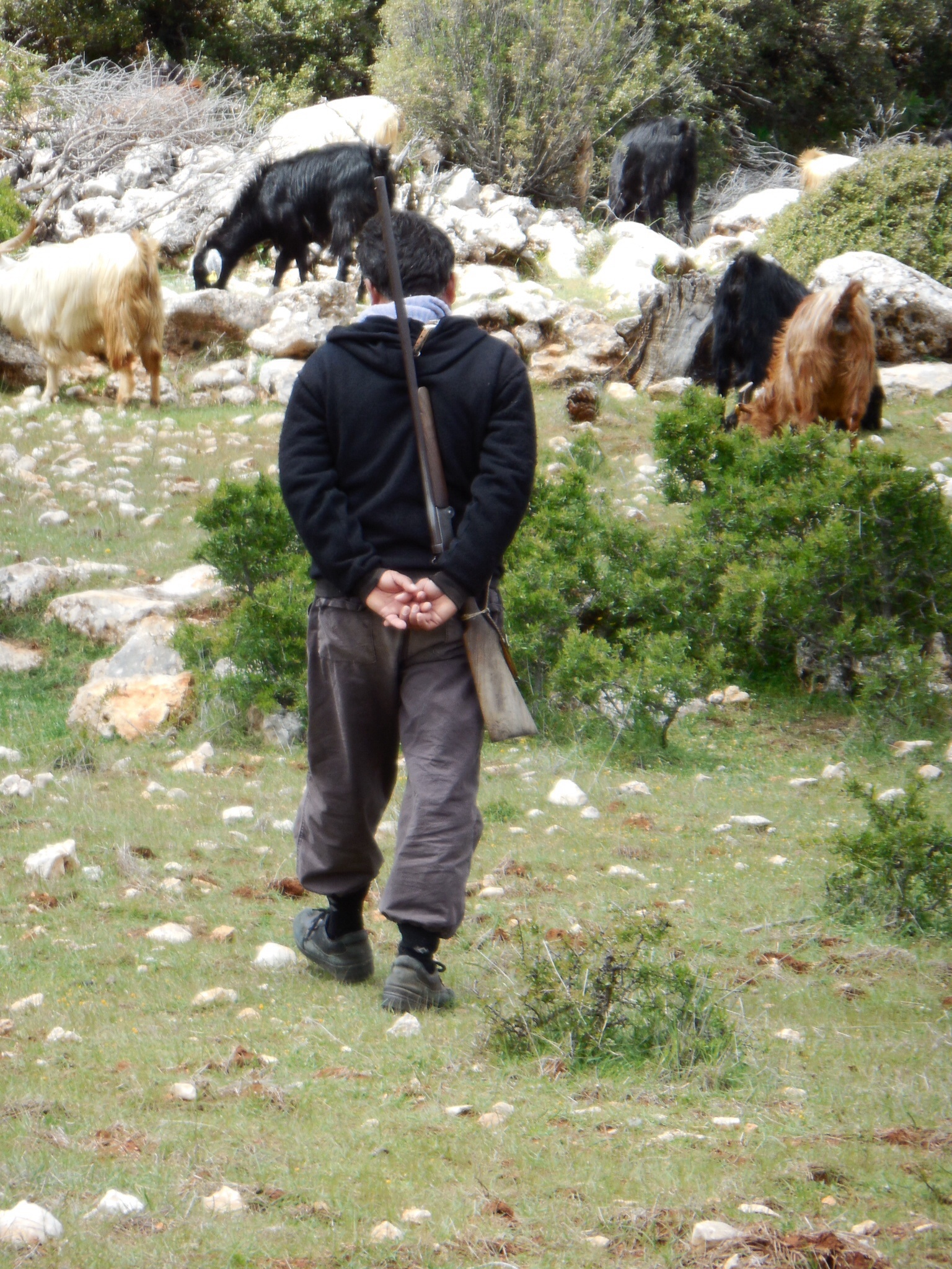 Ejected shotgun shells are a common sight on the Lycian Way and many roadsigns bear testimonials of passing potshots. From afar I notice the barrel of the shotgun slung over the right shoulder of the shepherd approaching.
