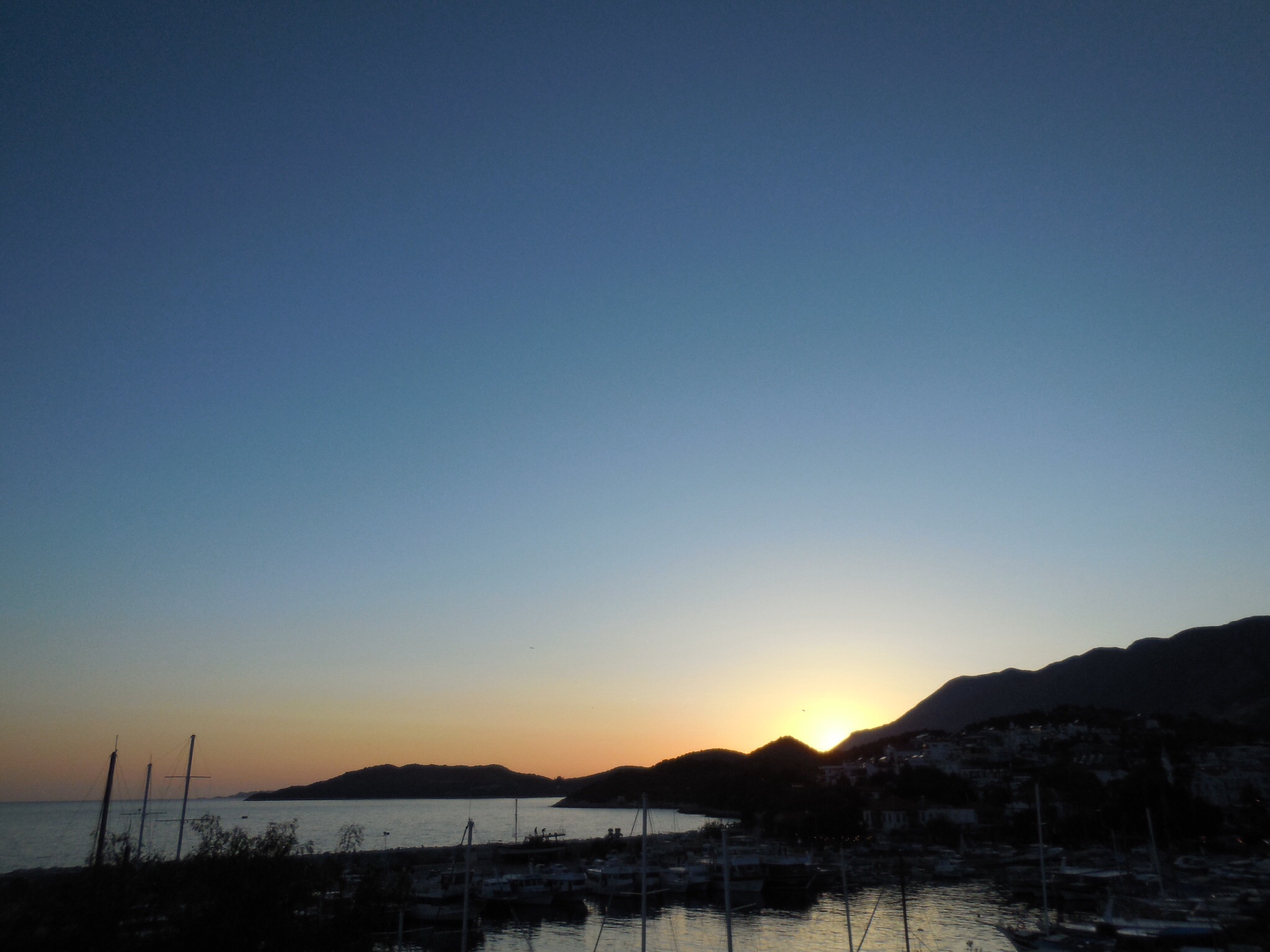 Dragging a finger above his eye our waiter at the terrace restaurant teaches us that Kas means the ‘eyebrow’ which sweeps curving around the ‘eye’ of the Greek island Meis lying close across the shining waters.