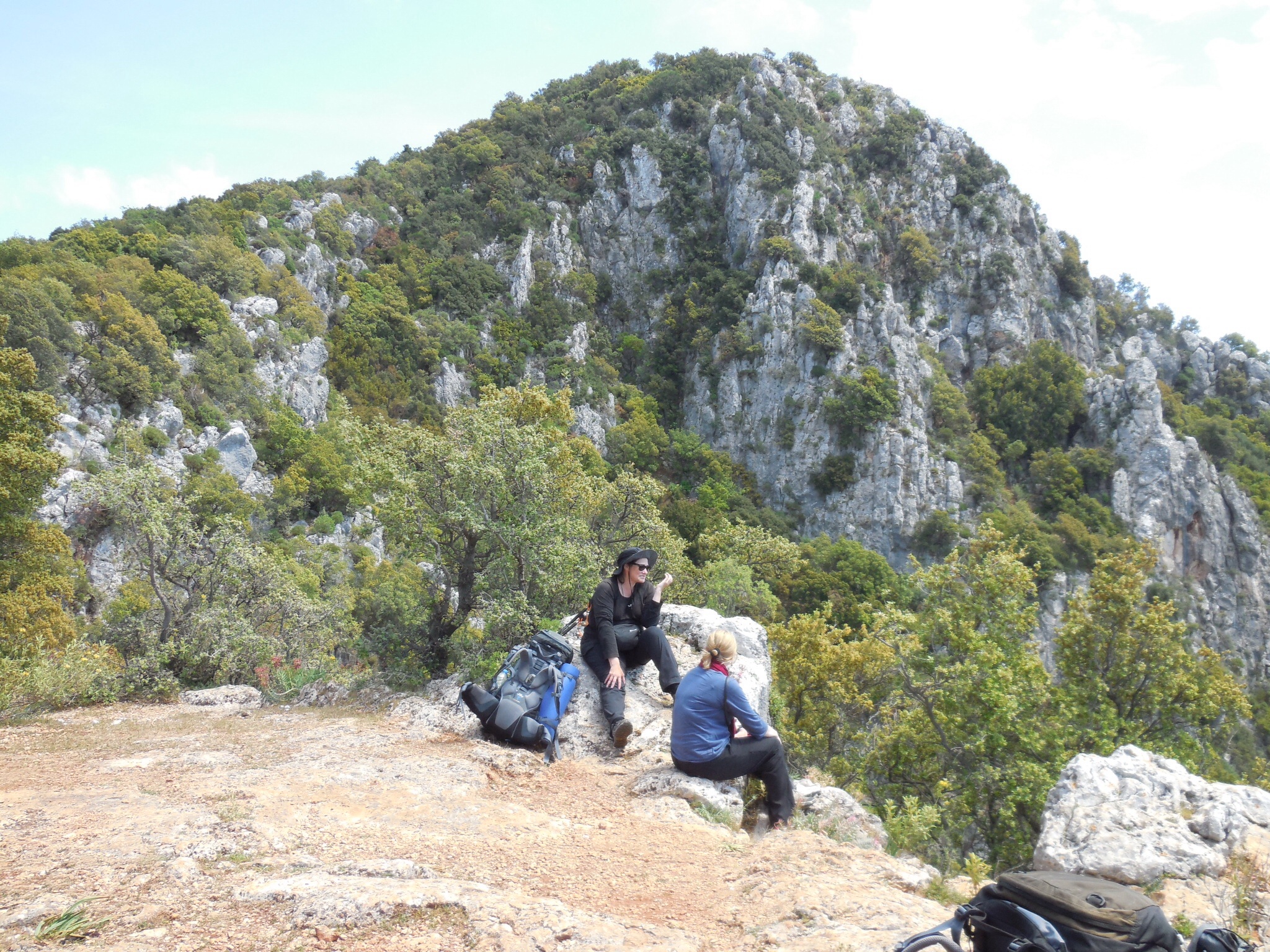 As we rest and rehydrate, readying ourselves for obviously steep gravel paths to come, our young American friend from the slopes of Phellos breaks through the trees.