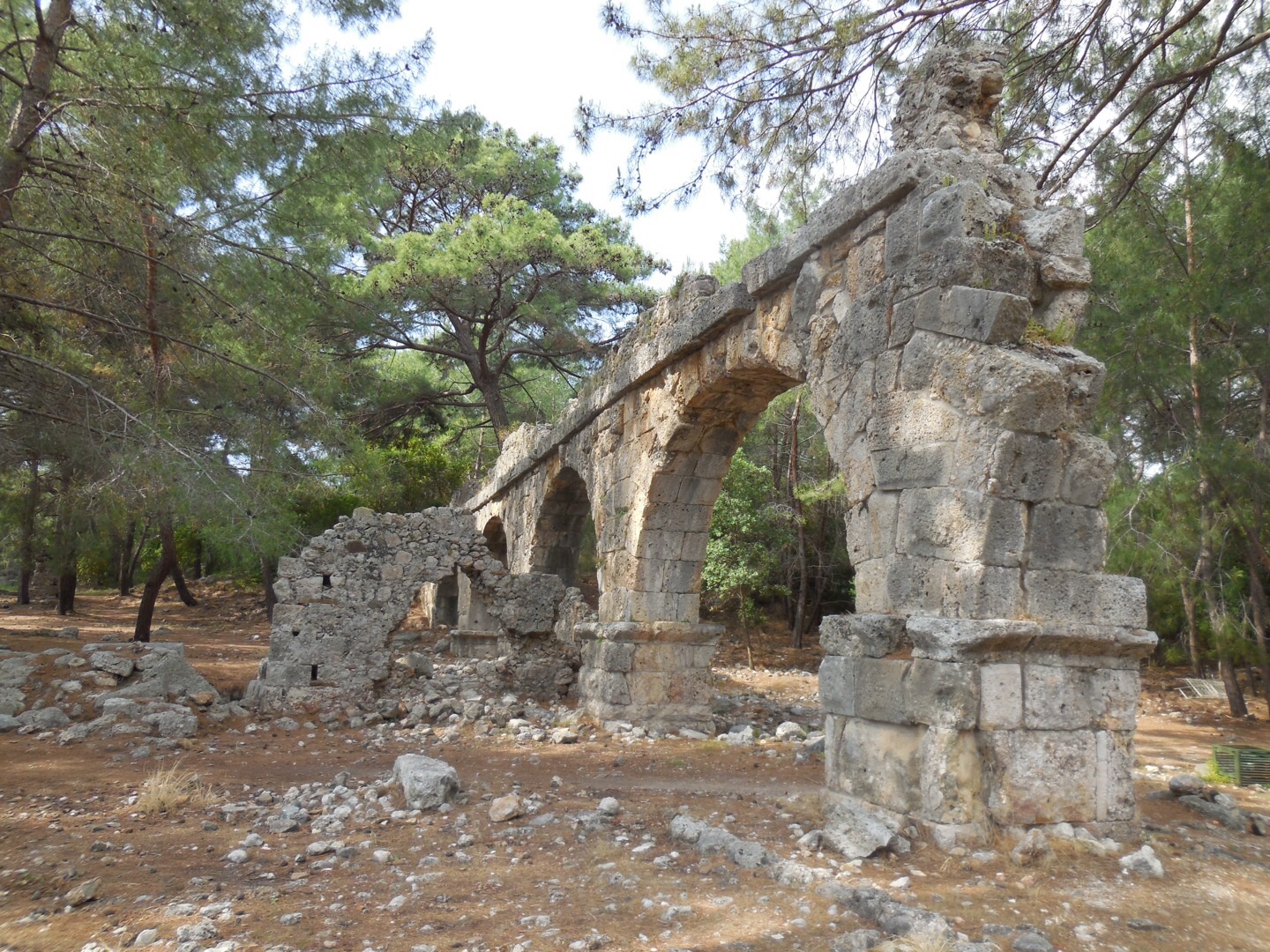 Phaselis is an extensive site of well preserved ruins and we walk under the arch of the remains of an aqueduct that once had its headwaters in the hills far above.
